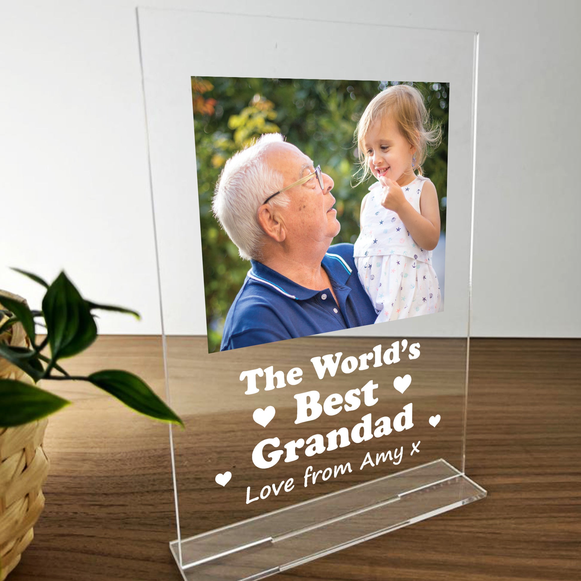 A Beautifully Printed A5 Personalised Clear Acrylic standing plaque with