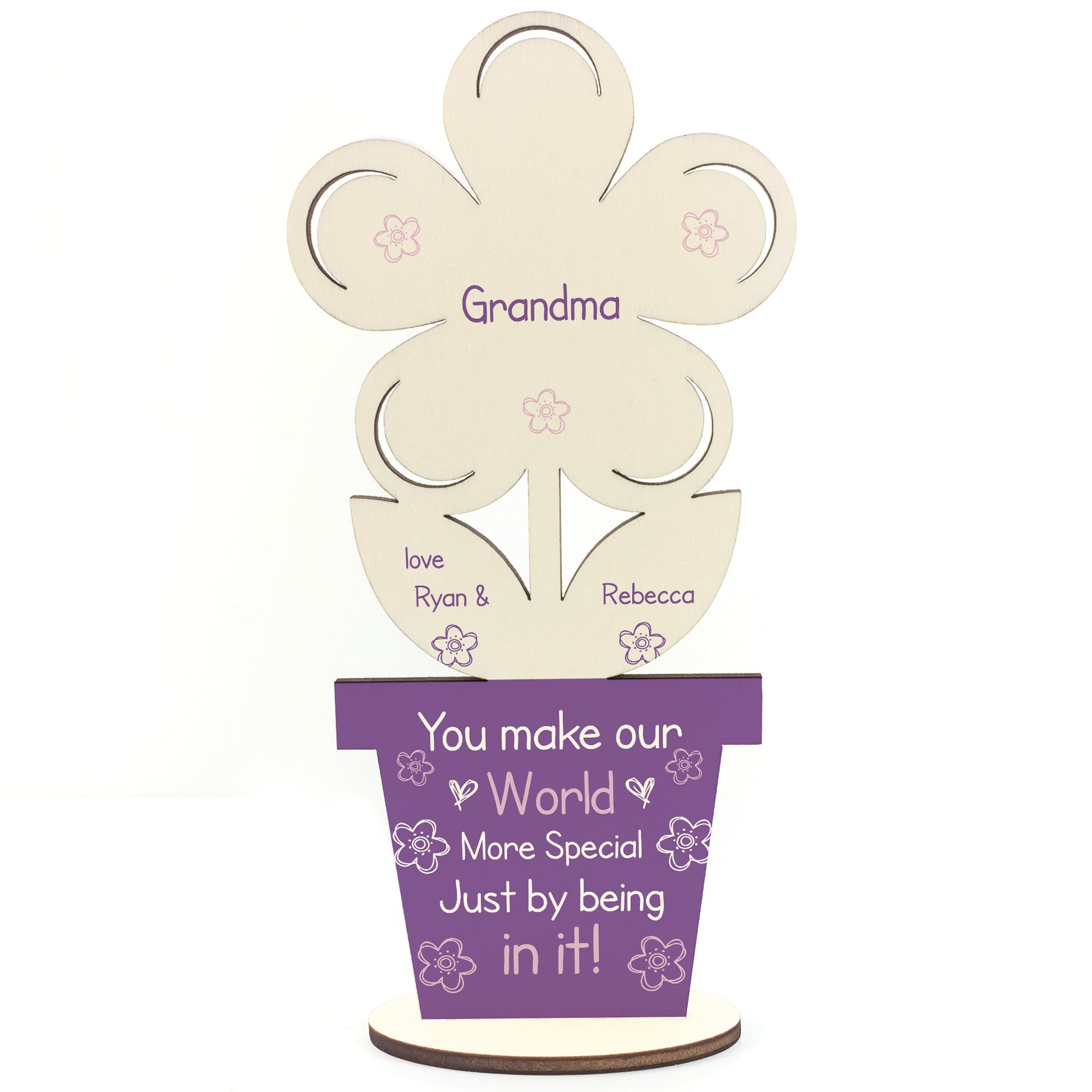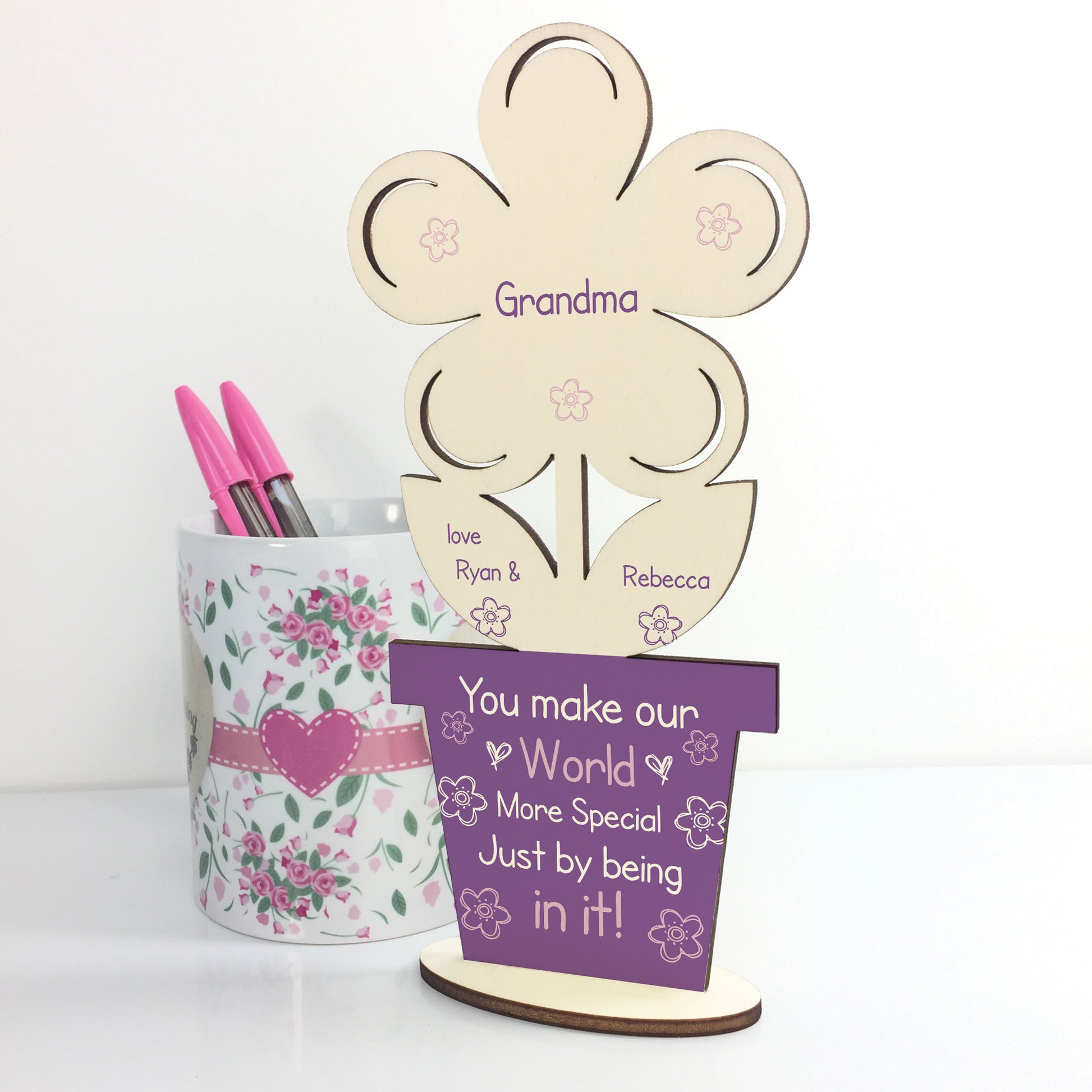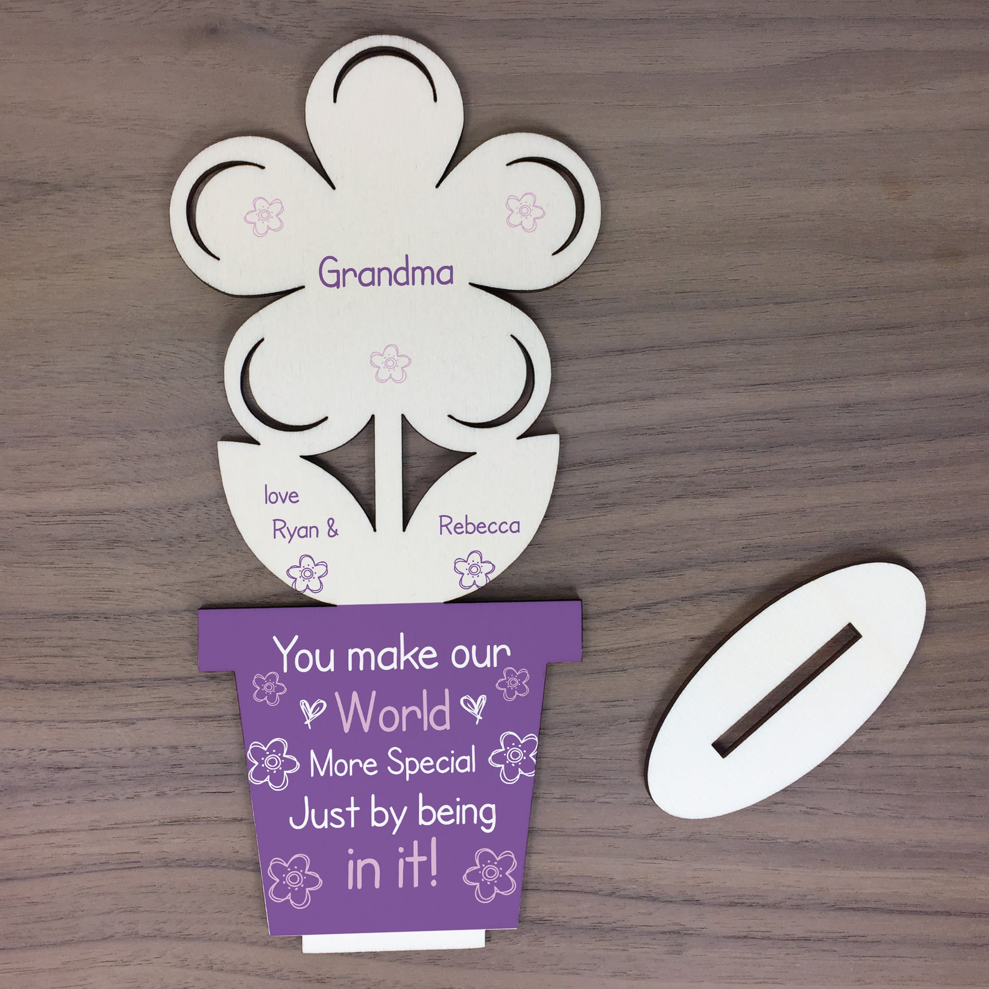 Personalised Birthday Mothers Day Gift For Grandma Wood Flower