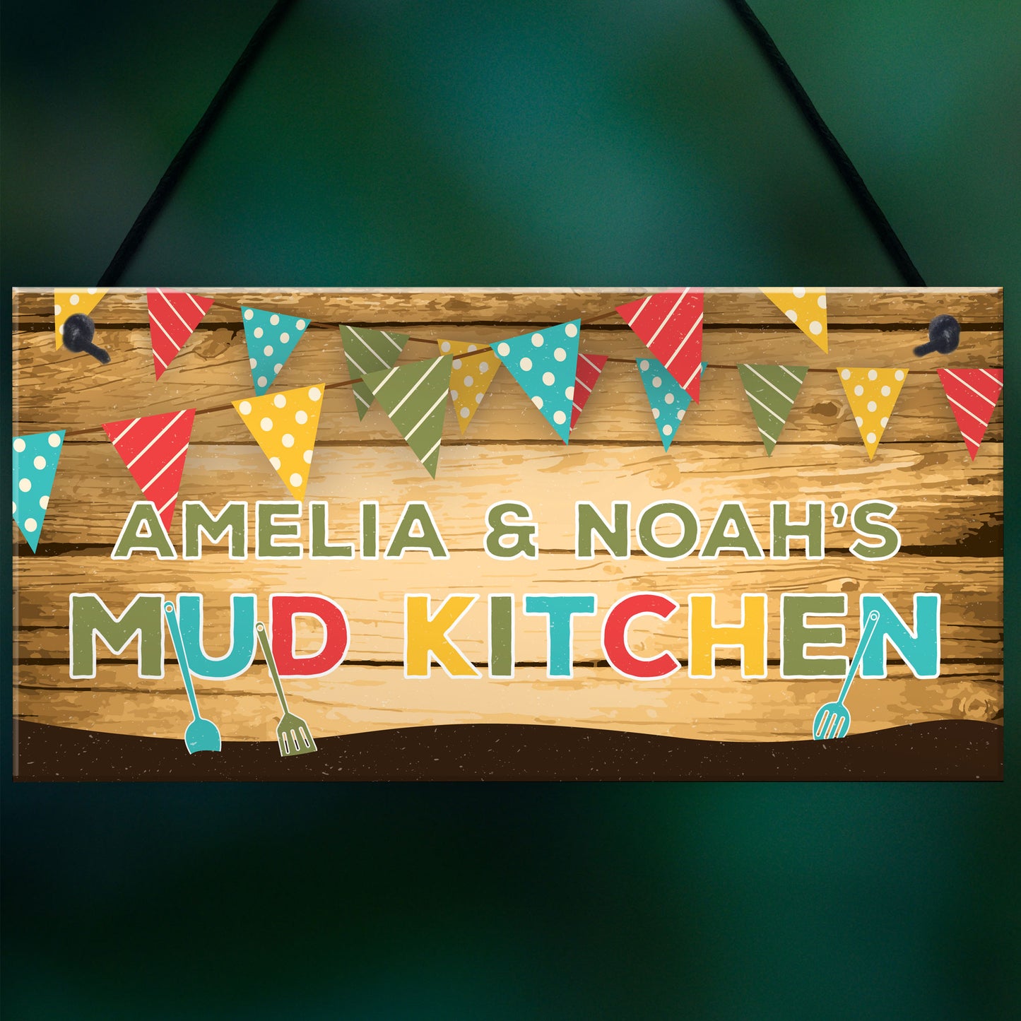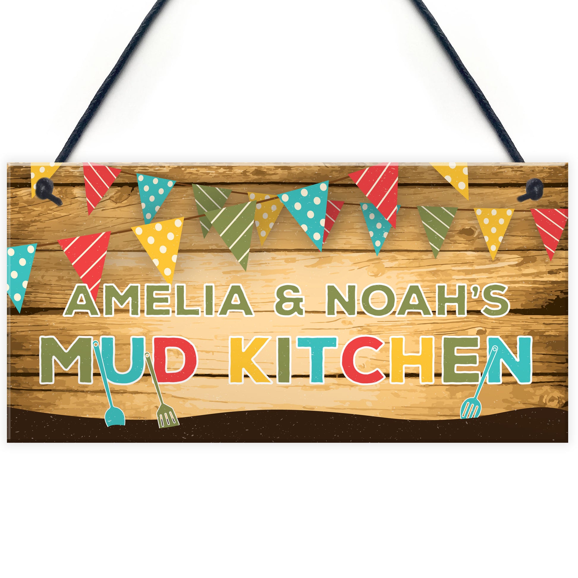 Personalised Colourful Mud Kitchen Sign For Garden Daughter Son