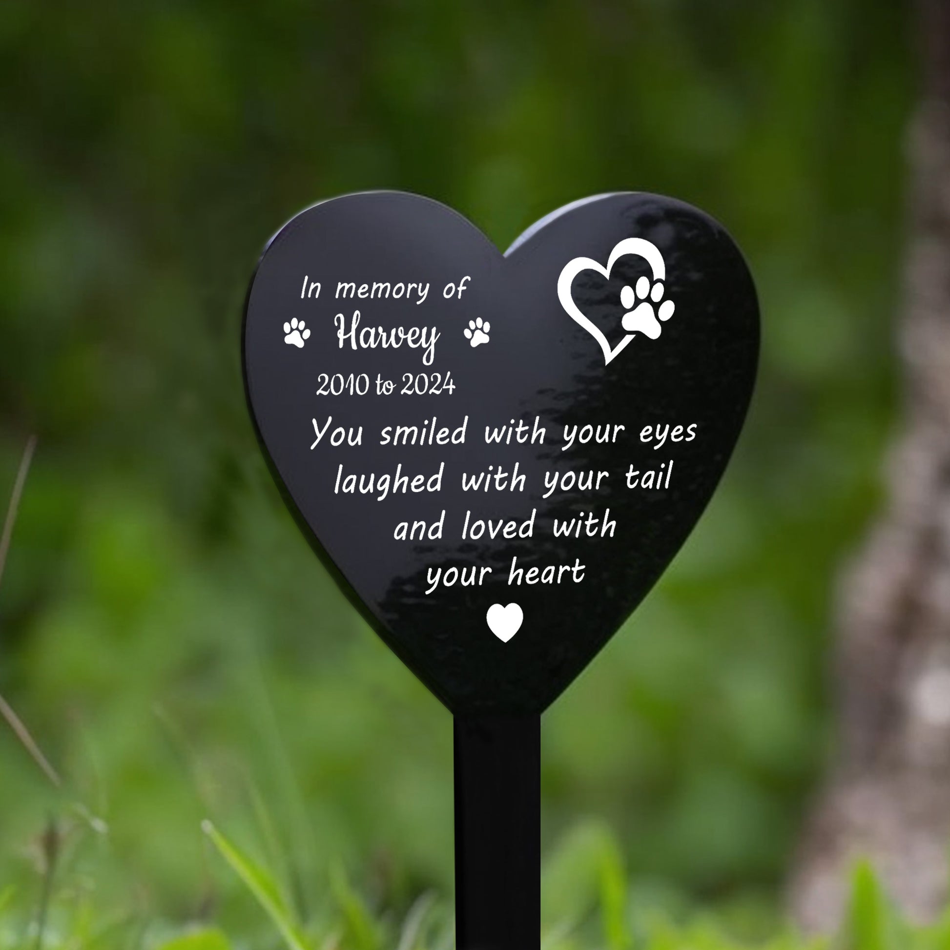 The black acrylic heart with stake is not only a beautiful and practical way to remember a loved one, but it's also a great way to add a personal touch to your garden or outdoor space. Whether you're looking to create a peaceful and reflective area or simply want to add some decoration to your garden, this memorial plaque is the perfect choice.