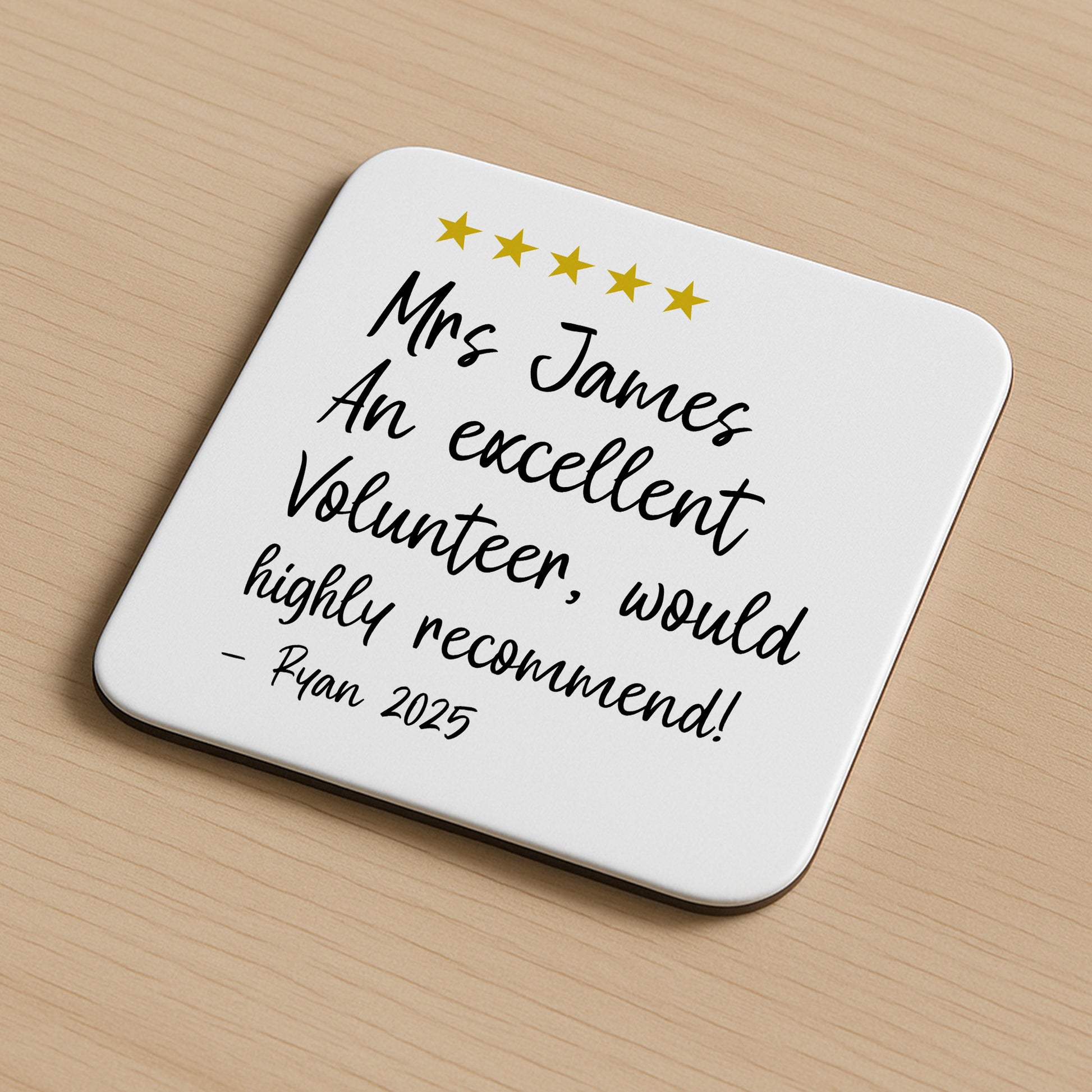 Personalised Excellent Volunteer Coaster Appreciation Gift