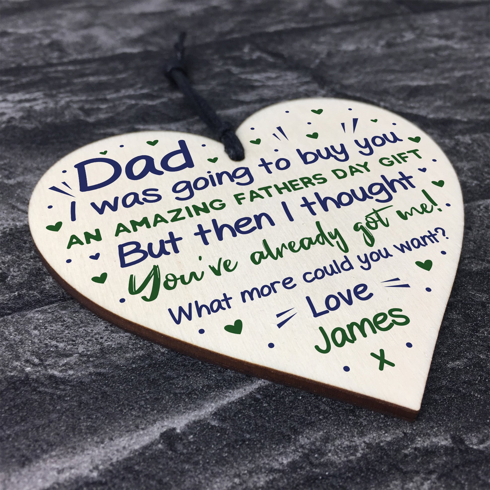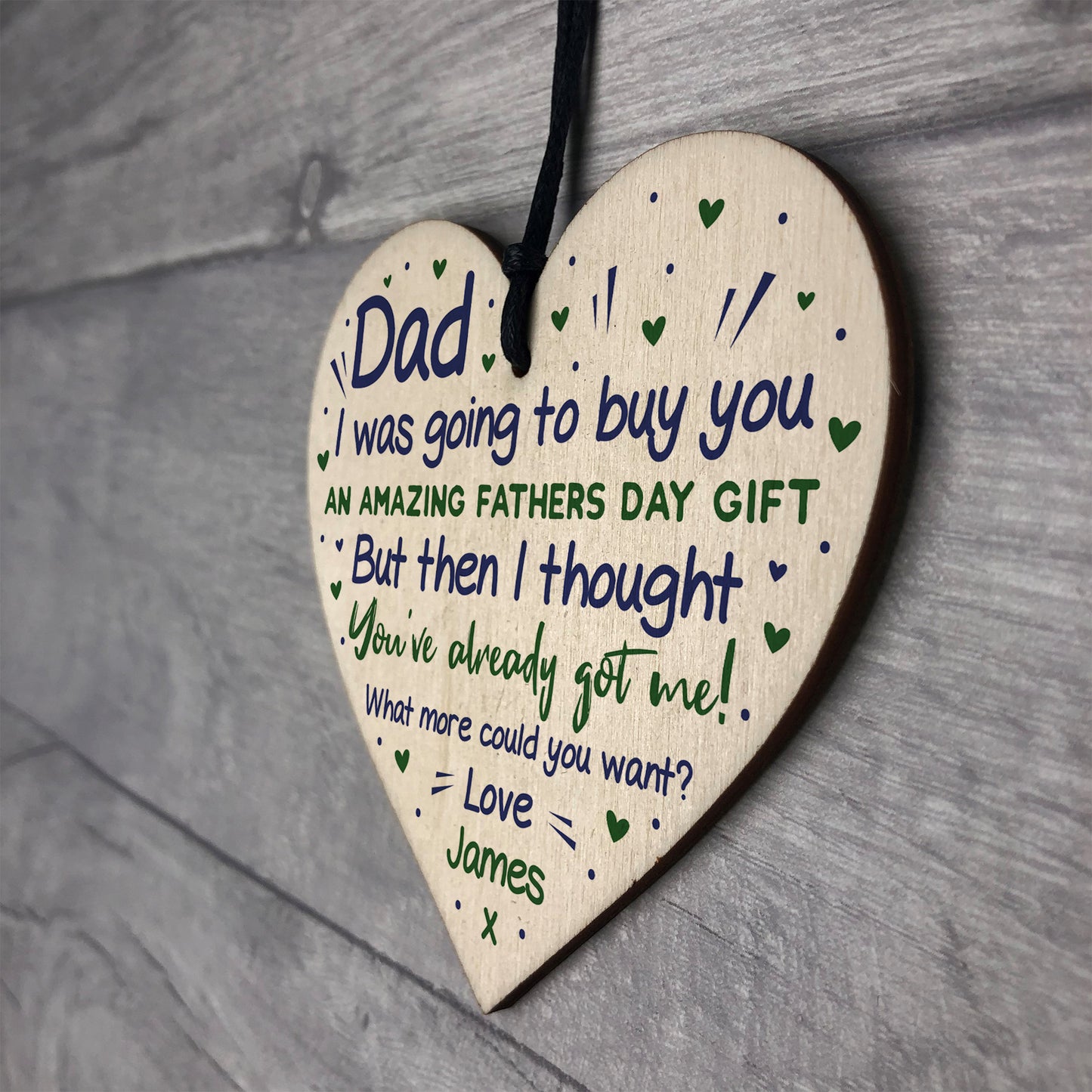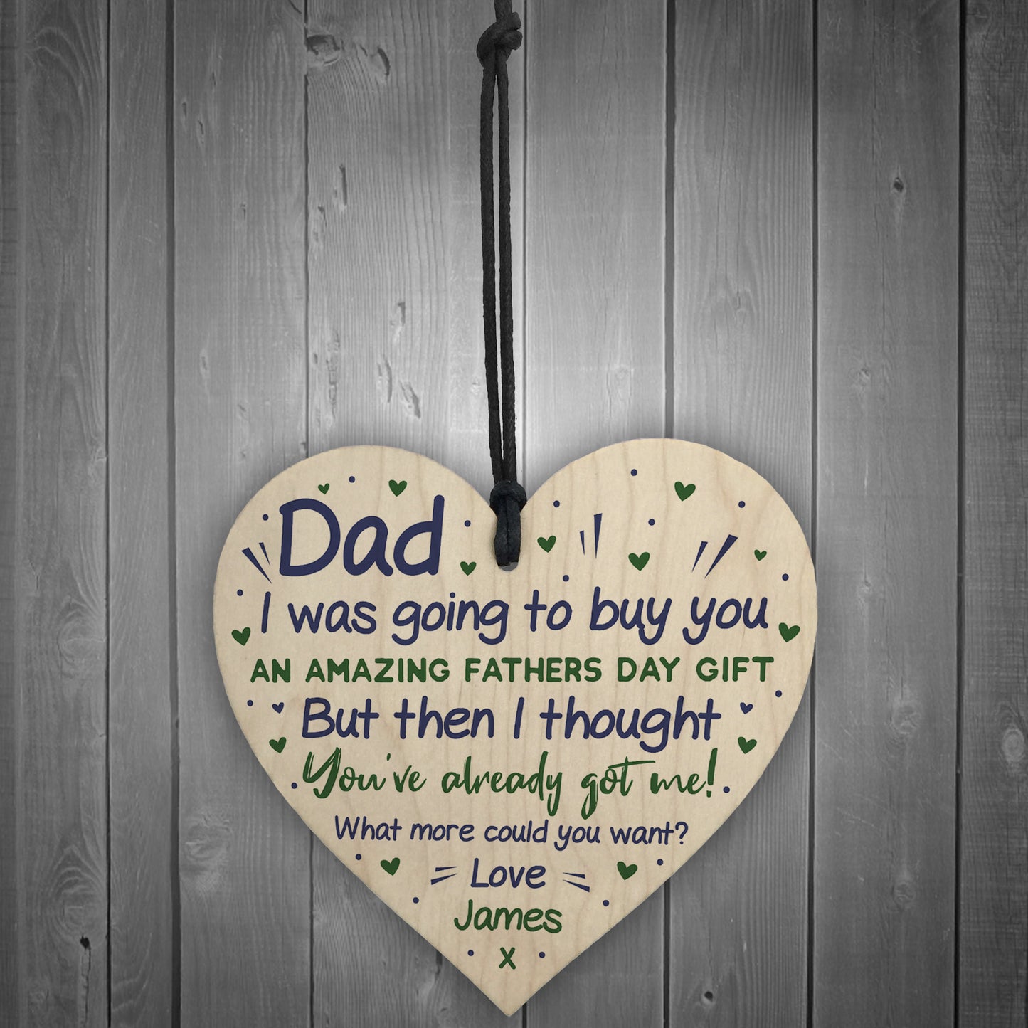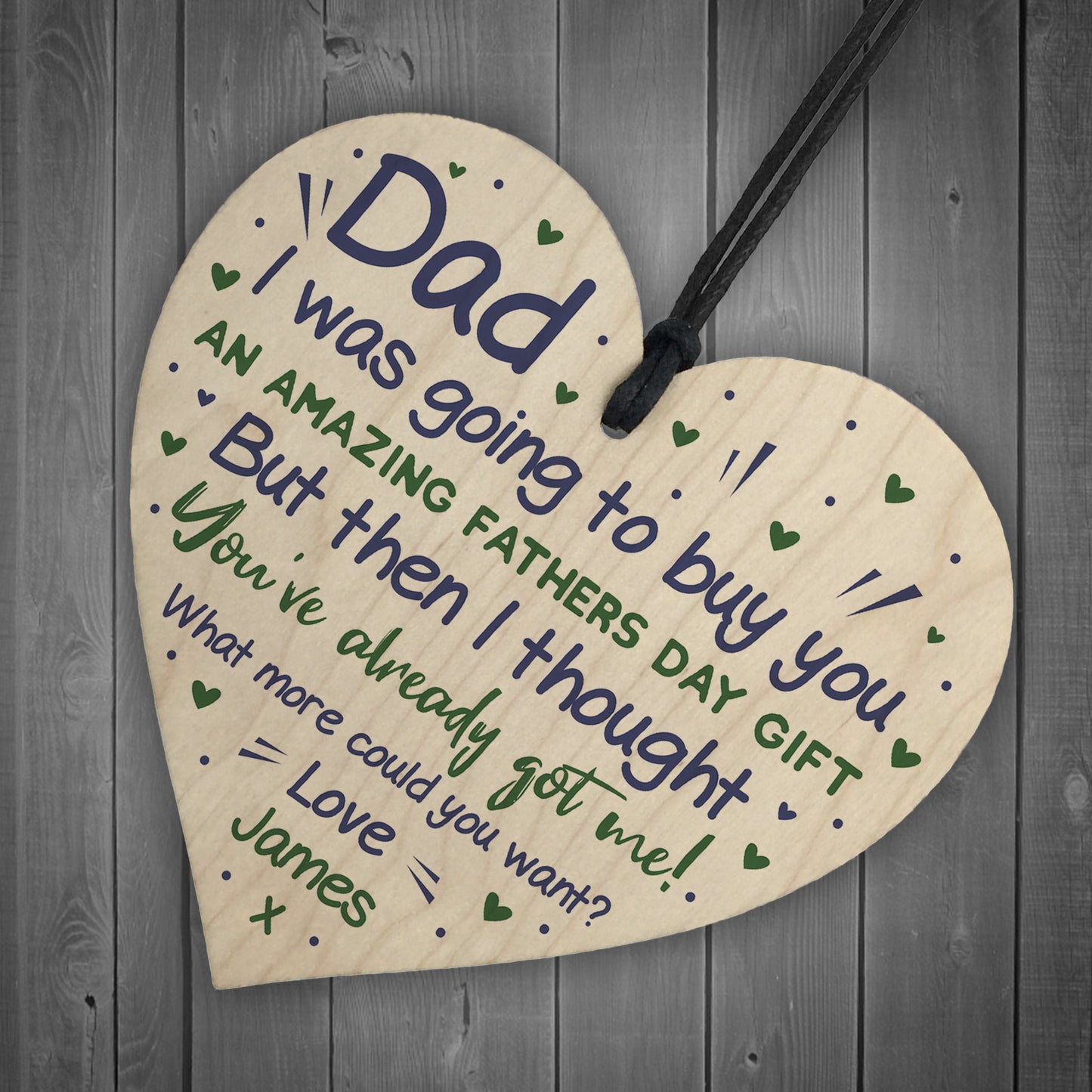 The sign is made from FSC Certified wood, and the design is permanently printed into the wood. The wooden heart is supplied with waxed cotton rope to allow easy hanging and looks great in any room of the house.