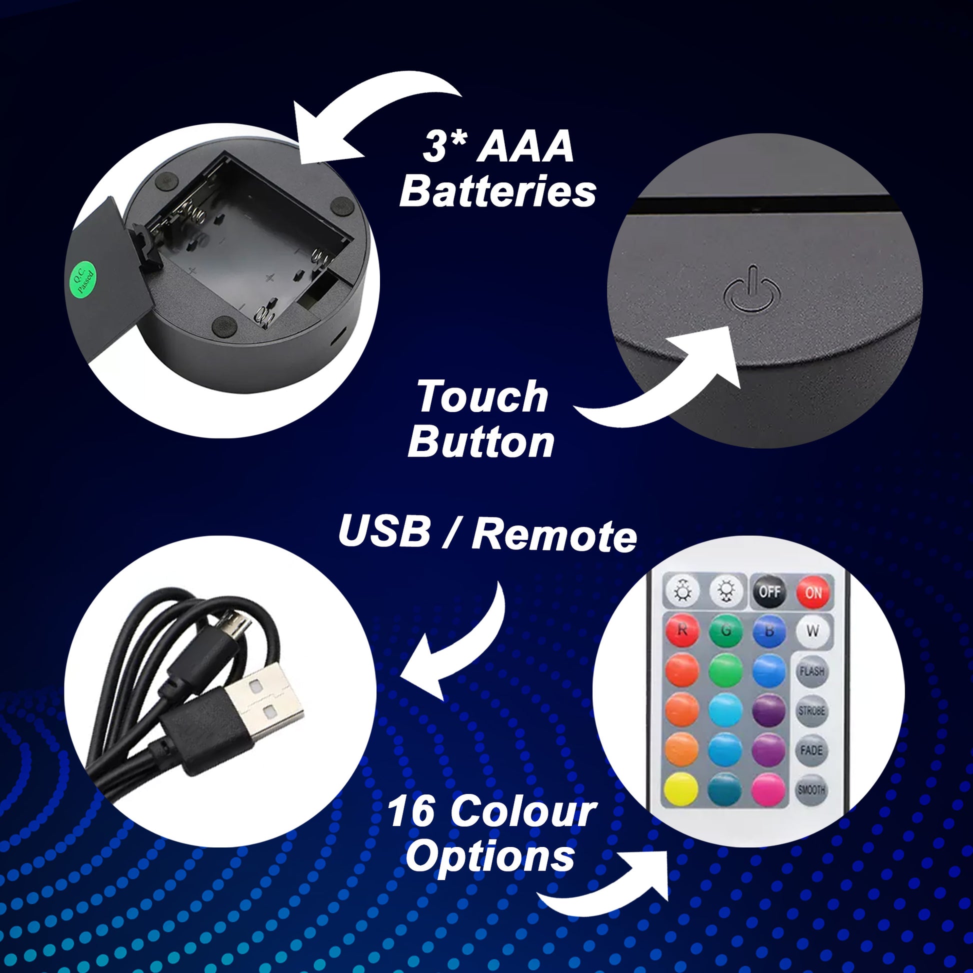 The plaque is made from high quality acrylic, which will last for years to come. The design is printed onto the plaque, paying close attention to fine details and finishing. The plaque is supplied with an LED base and you can use either the USB or battery option so the light can be free standing on a shelf or desk.