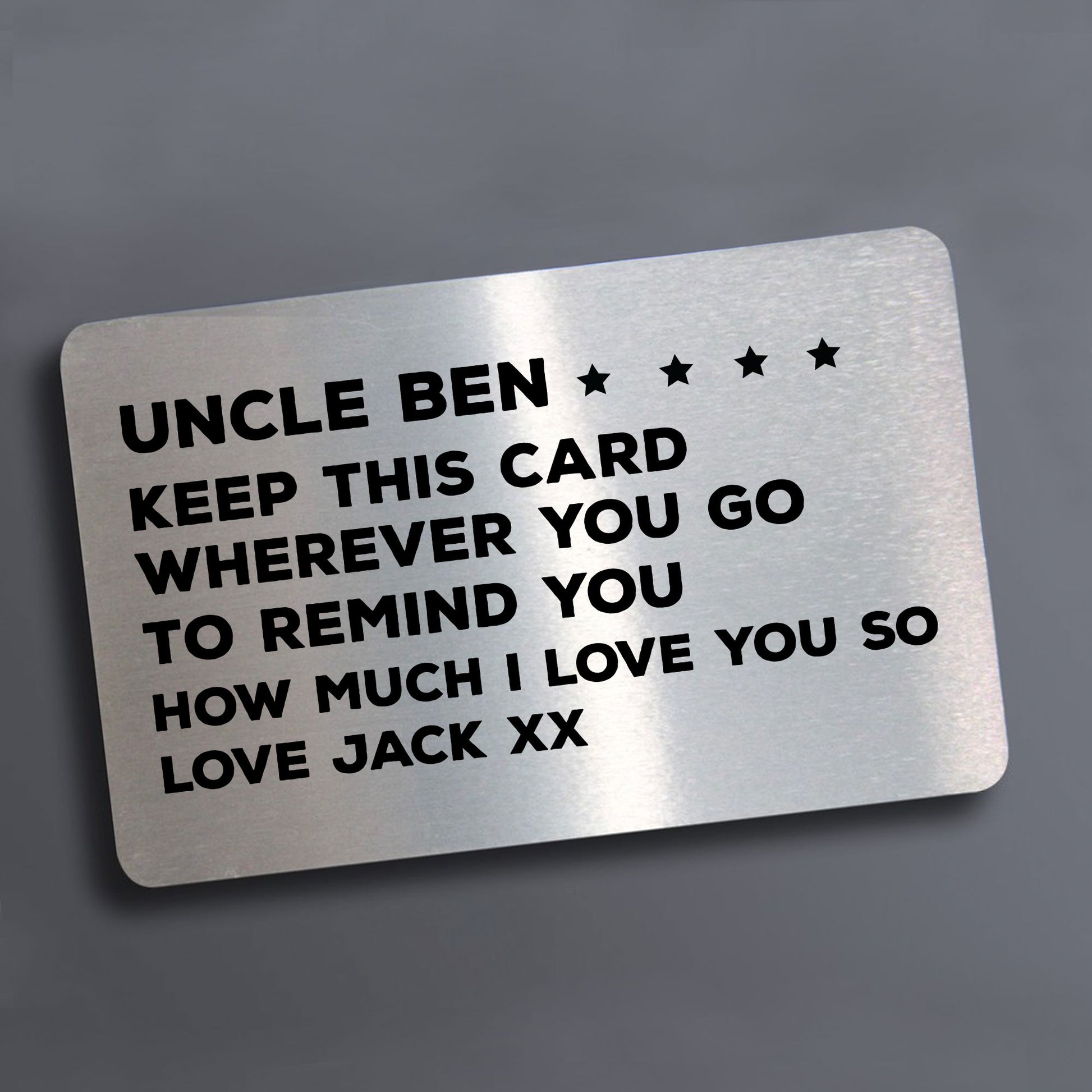 A beautifully printed metal wallet card with a personalised touch! A