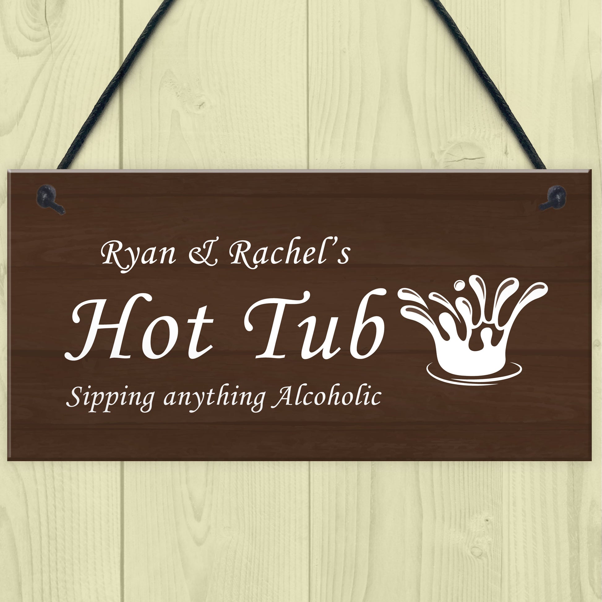 The perfect hot tub decor sign! A stylish and sophisticated plaque that will look great hung up in the garden or beside the hot tub. This gorgeous plaque makes an amazing Birthday or Christmas gift but is also a great gift anytime of the year. Supplied ready to hang, a beautiful keepsake that will be treasured for years to come.