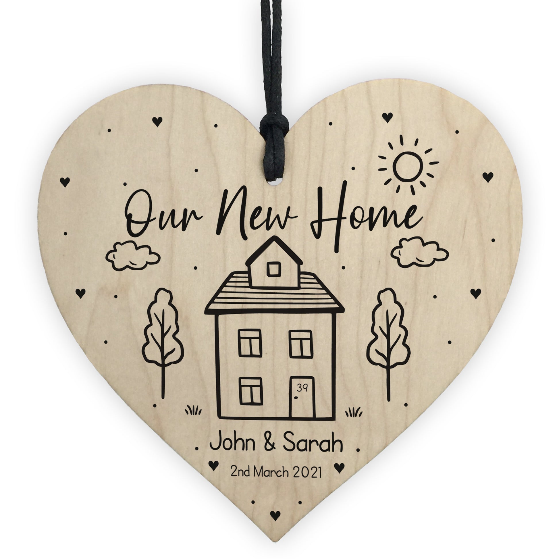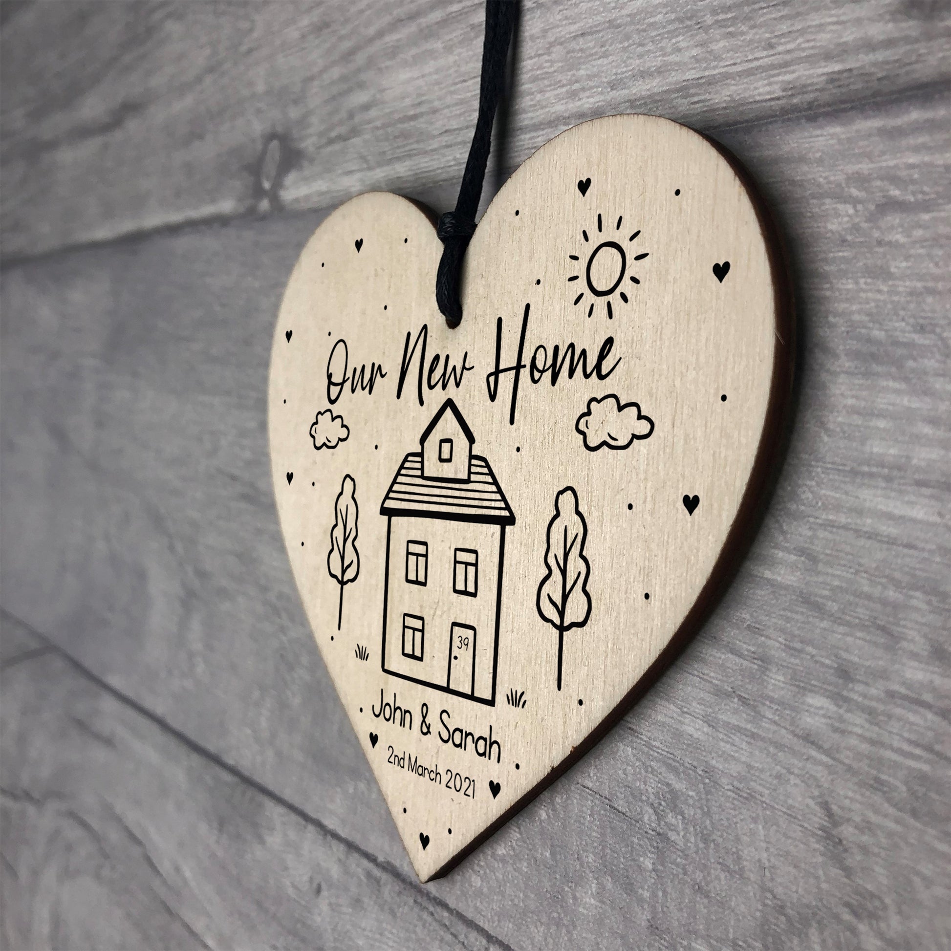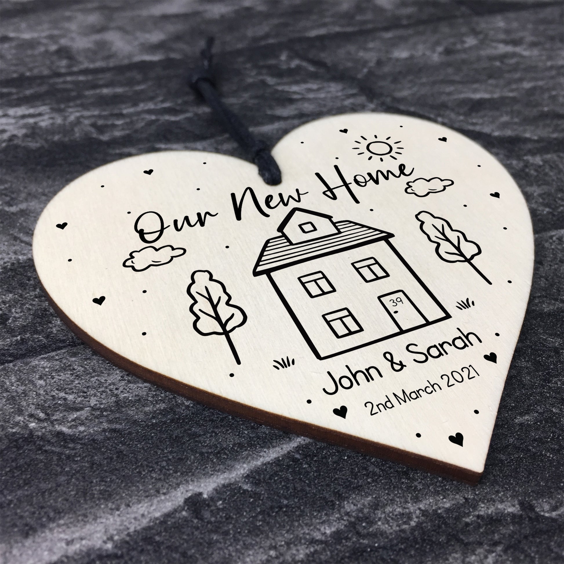 The sign is made from high quality, and the design is permanently printed into the heart. The wooden heart is supplied with waxed cotton rope in both black and red colours to allow easy hanging and looks great in any room of the house.