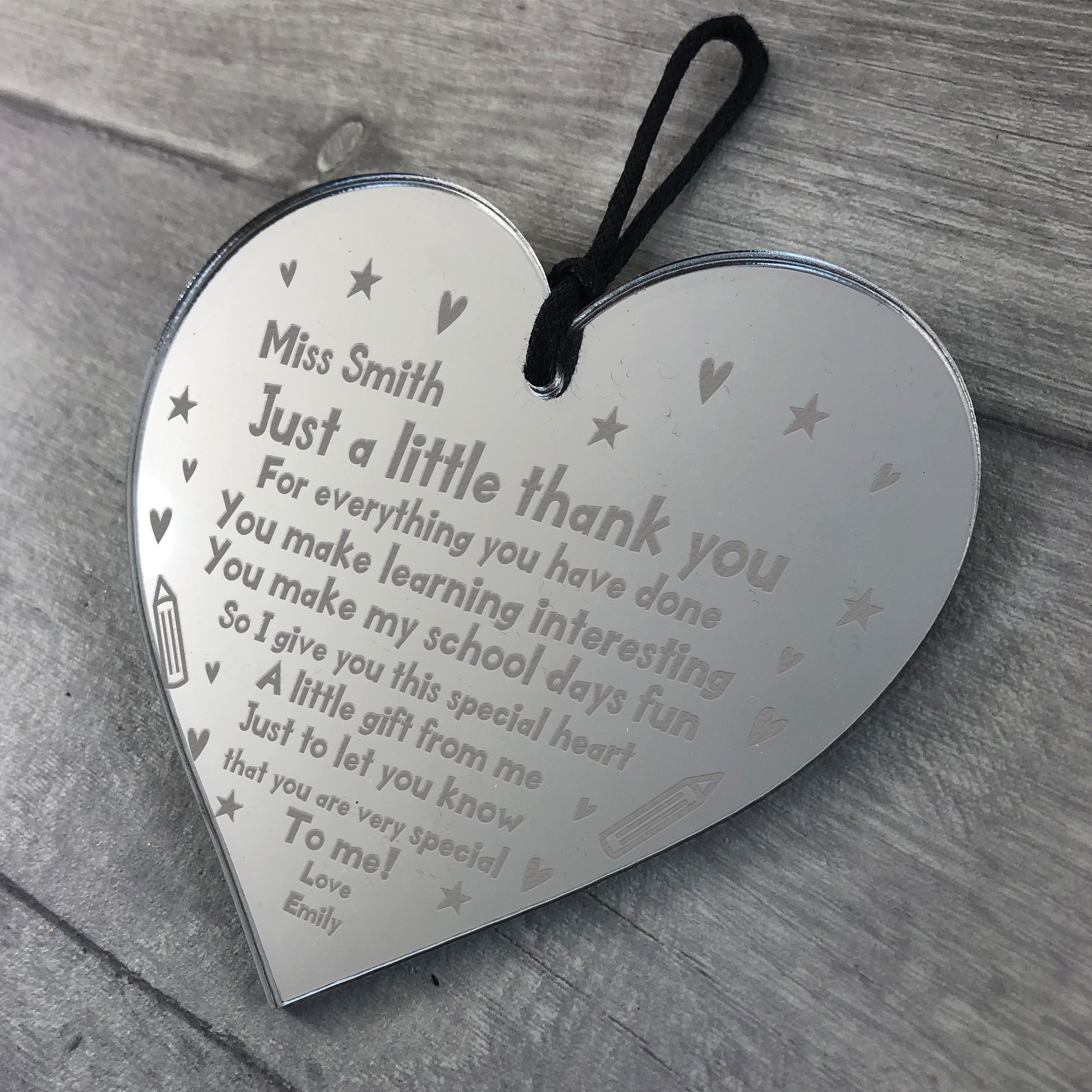 PERSONALISED Mirror Acrylic Heart For Teacher Thank You Nursery