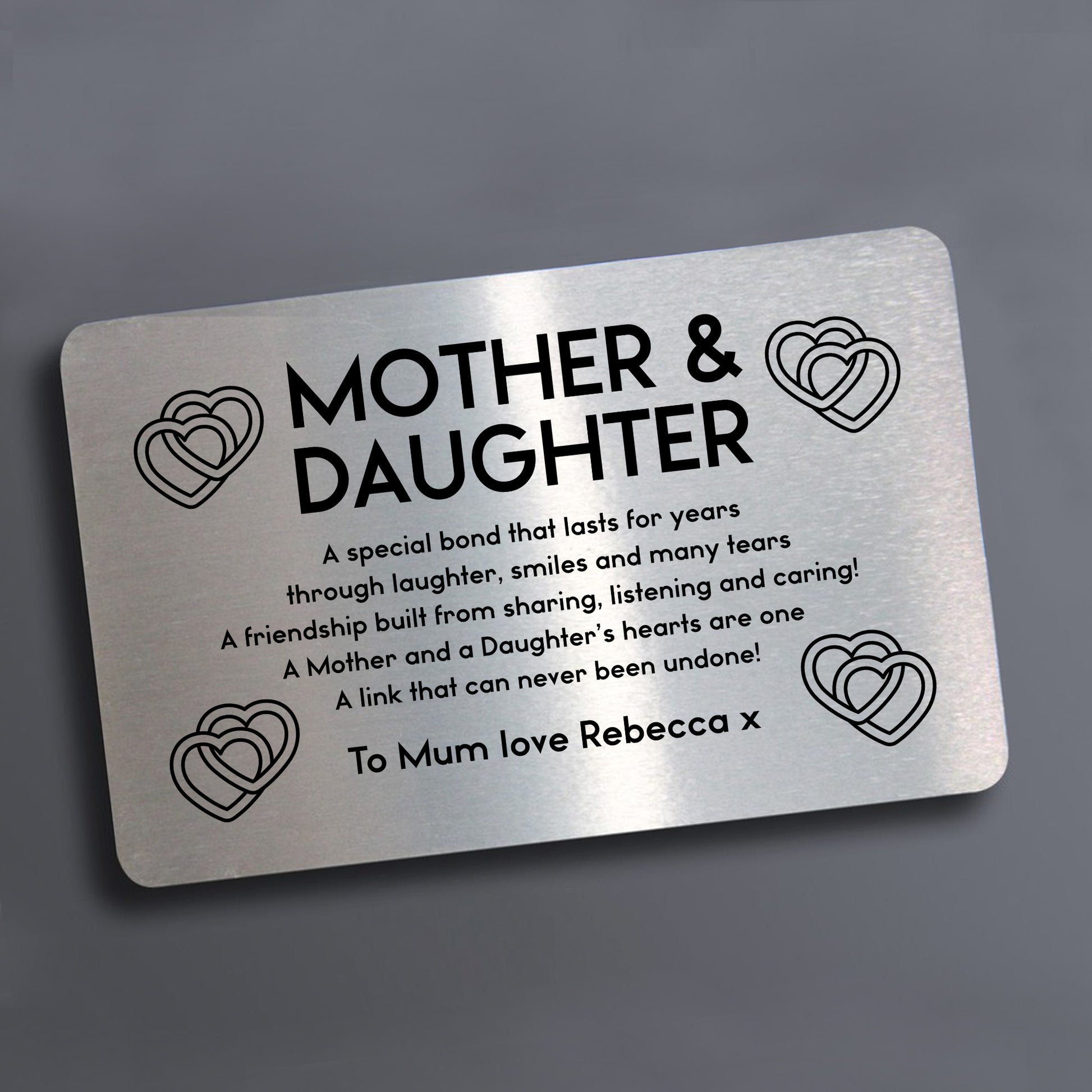 A beautifully printed metal wallet card with a personalised touch! A