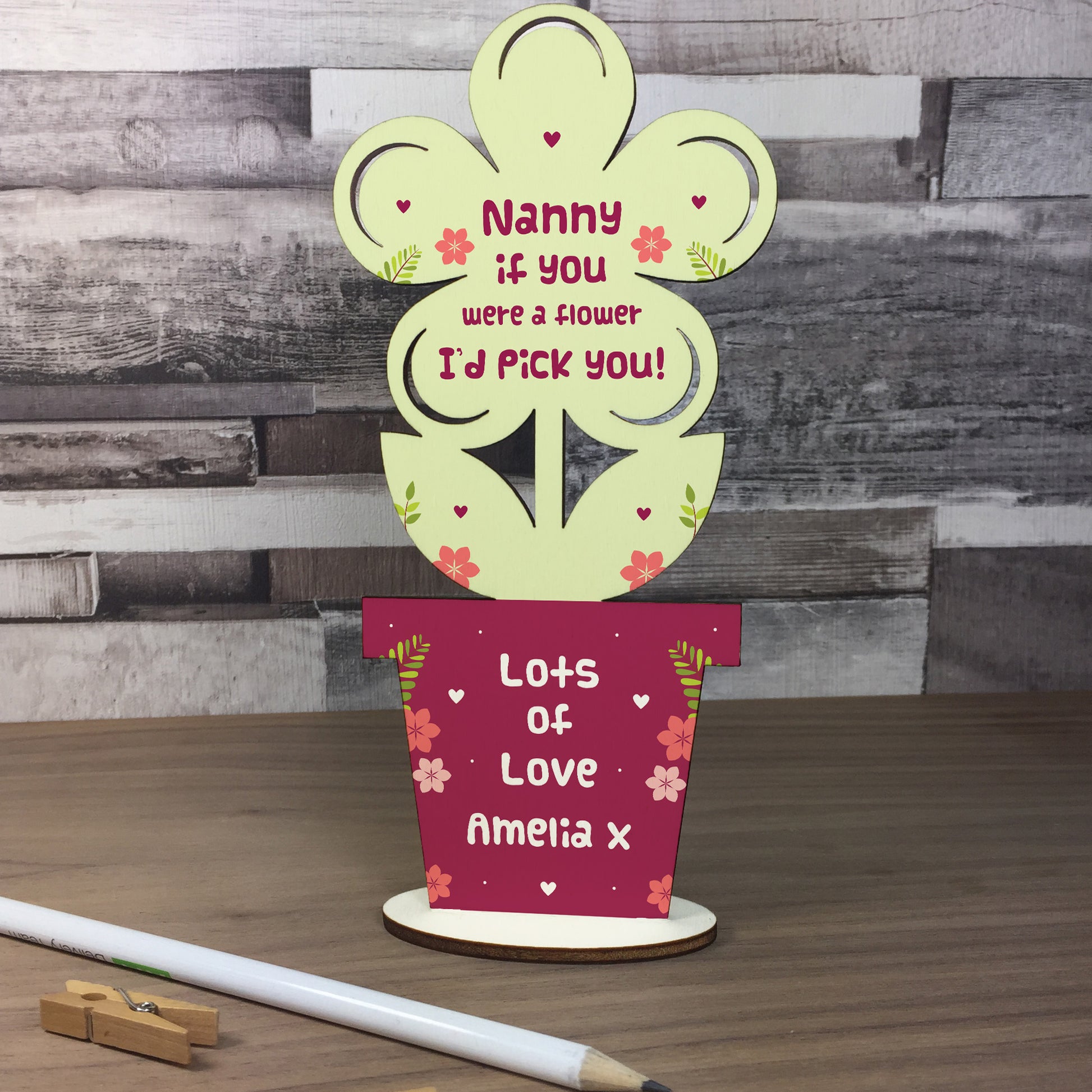 Personalised Nanny Gift Novelty Wooden Flower Birthday Gifts