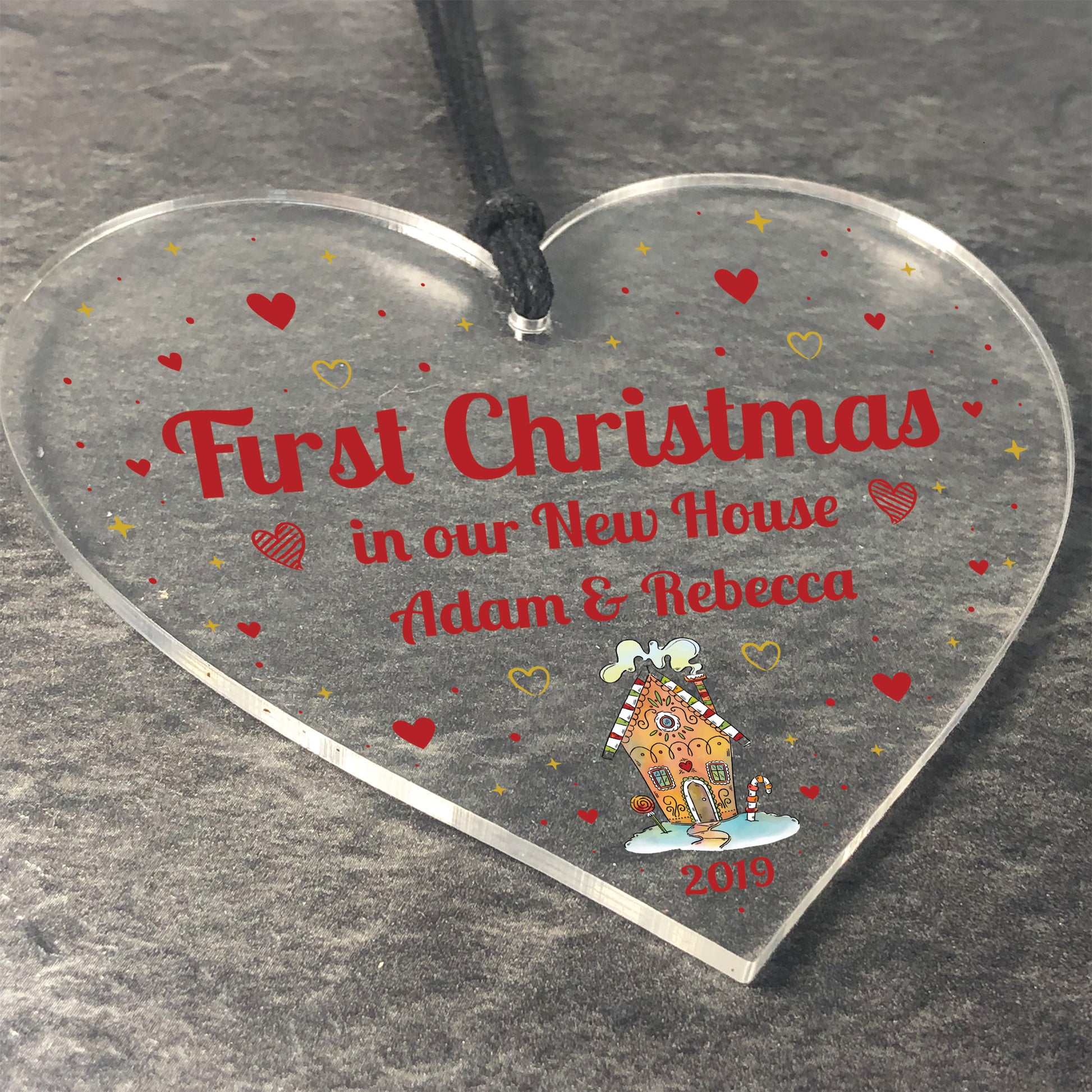 Personalised New Home Gift Heart Christmas Tree Decoration Sign