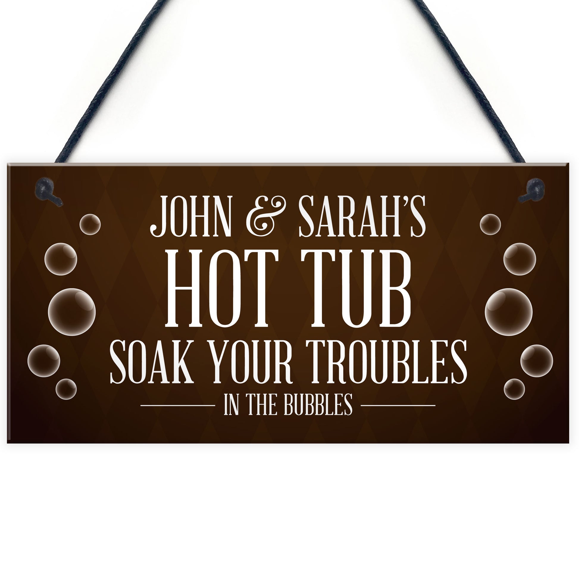 Personalised Novelty Hot Tub Signs For Garden Hanging Garden