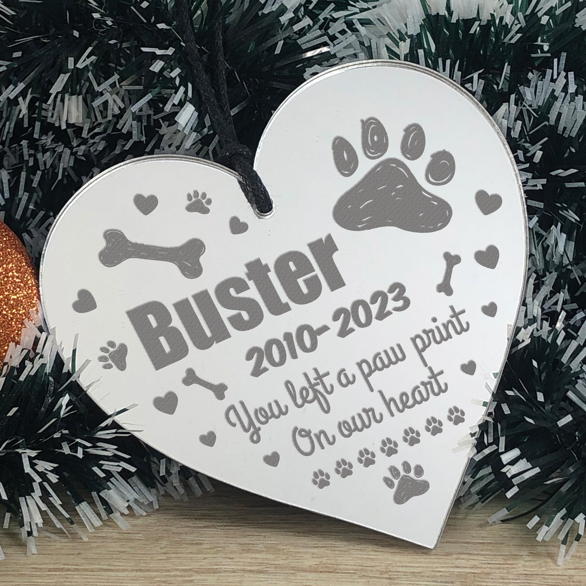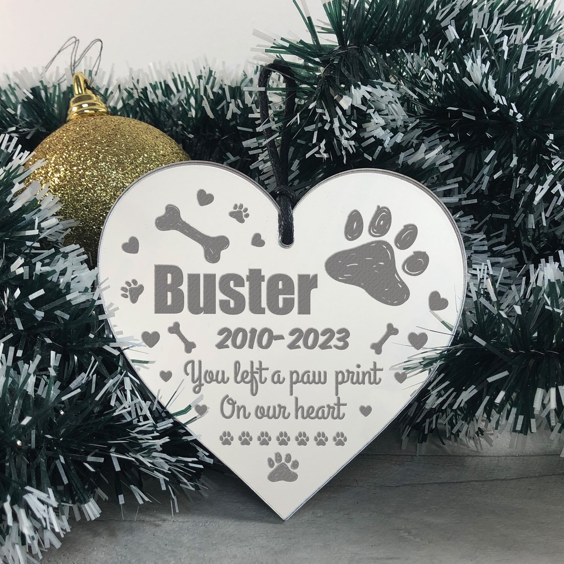 Personalised Pet Memorial Christmas Tree Bauble Decoration Heart