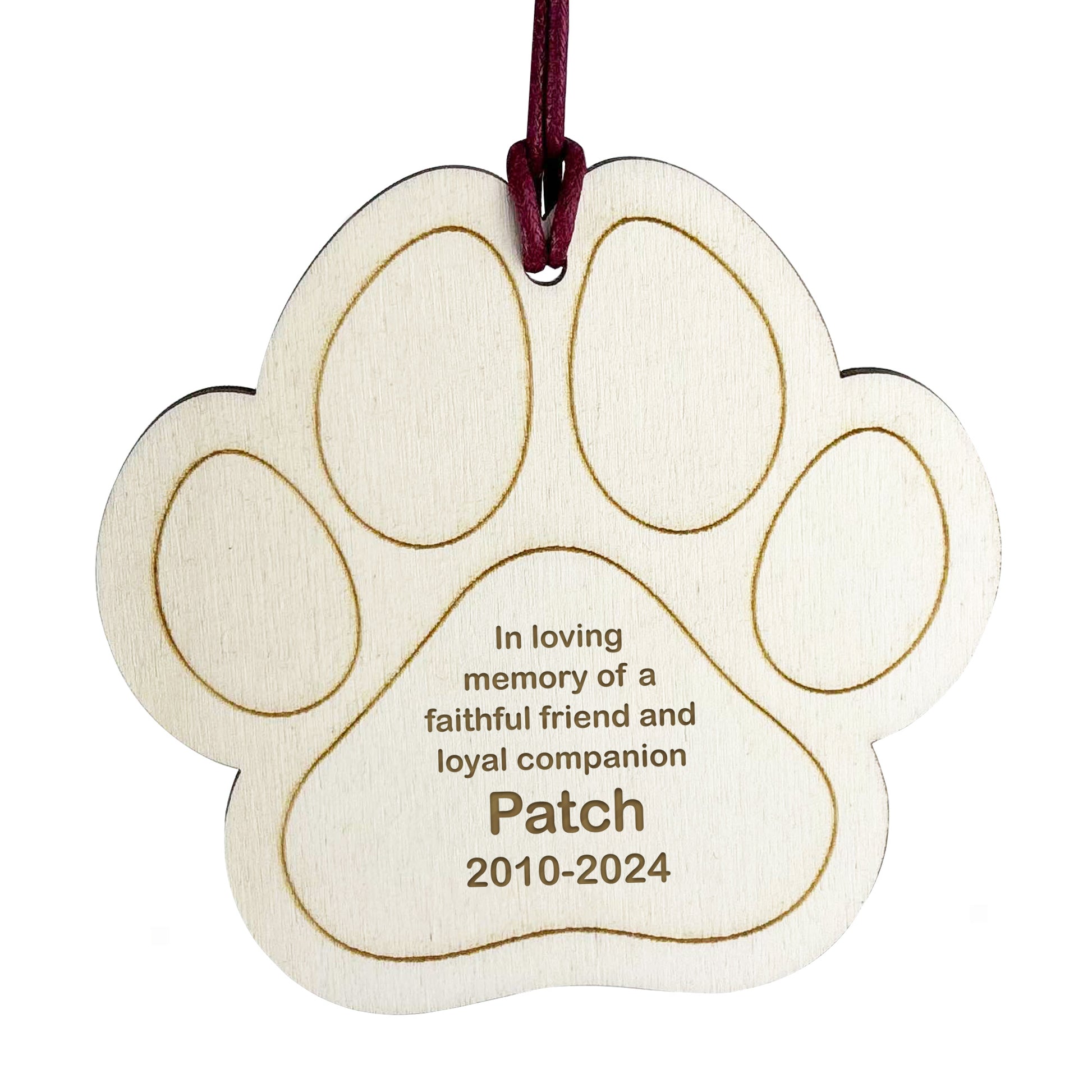 Personalised Pet Memorial Wooden Paw Print Decoration Dog Puppy