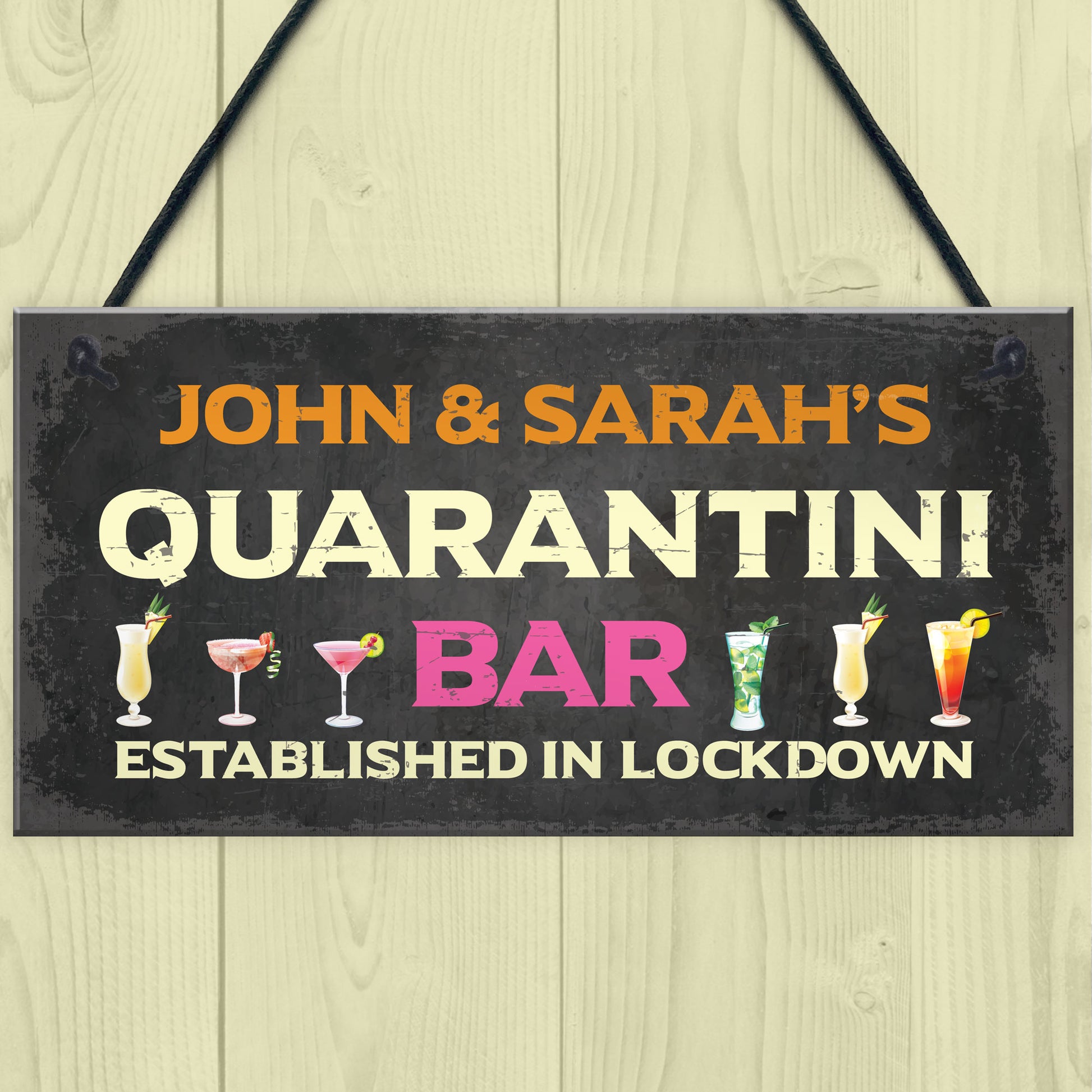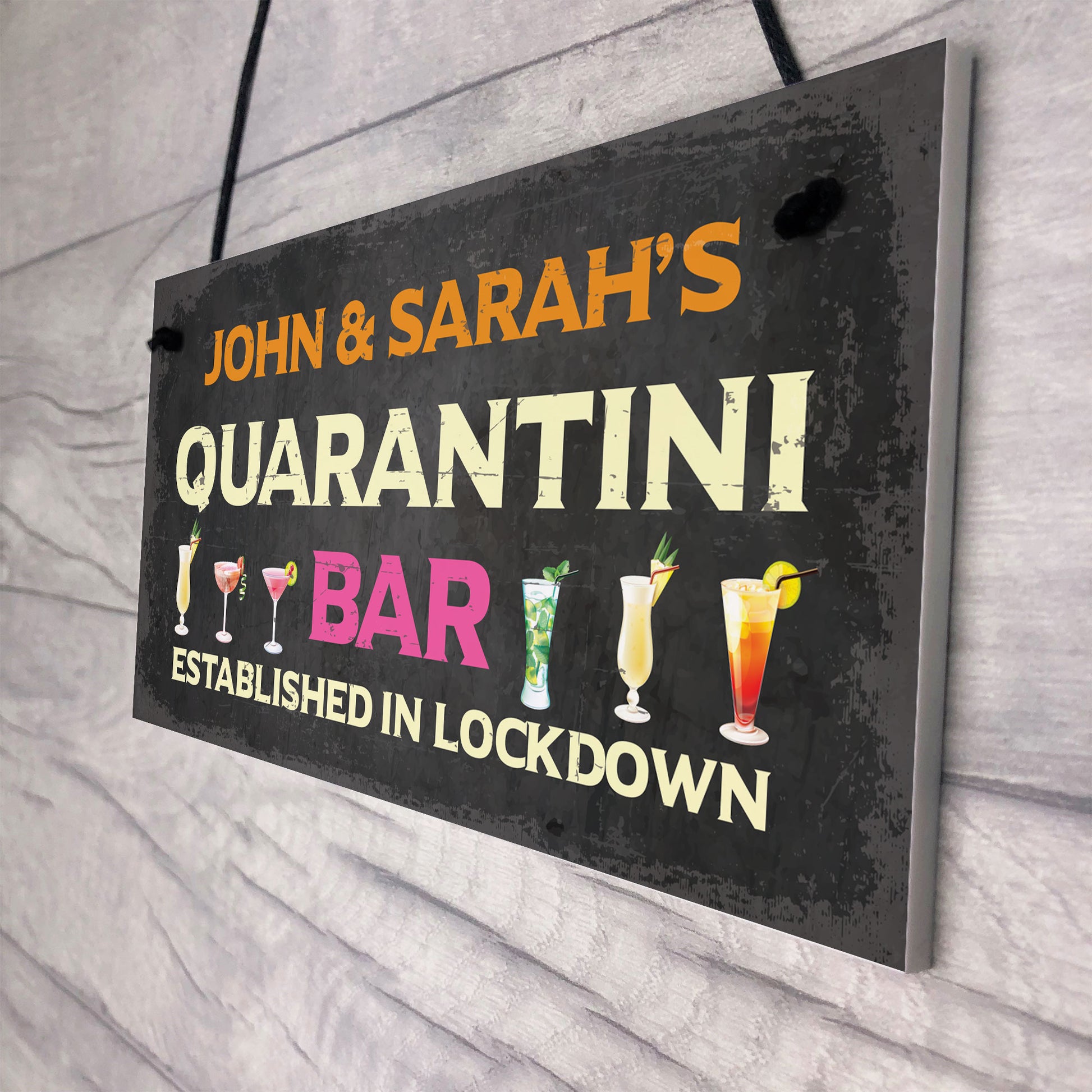 Personalised Quaratine Funny Home Bar Sign Cocktail Martini Gift