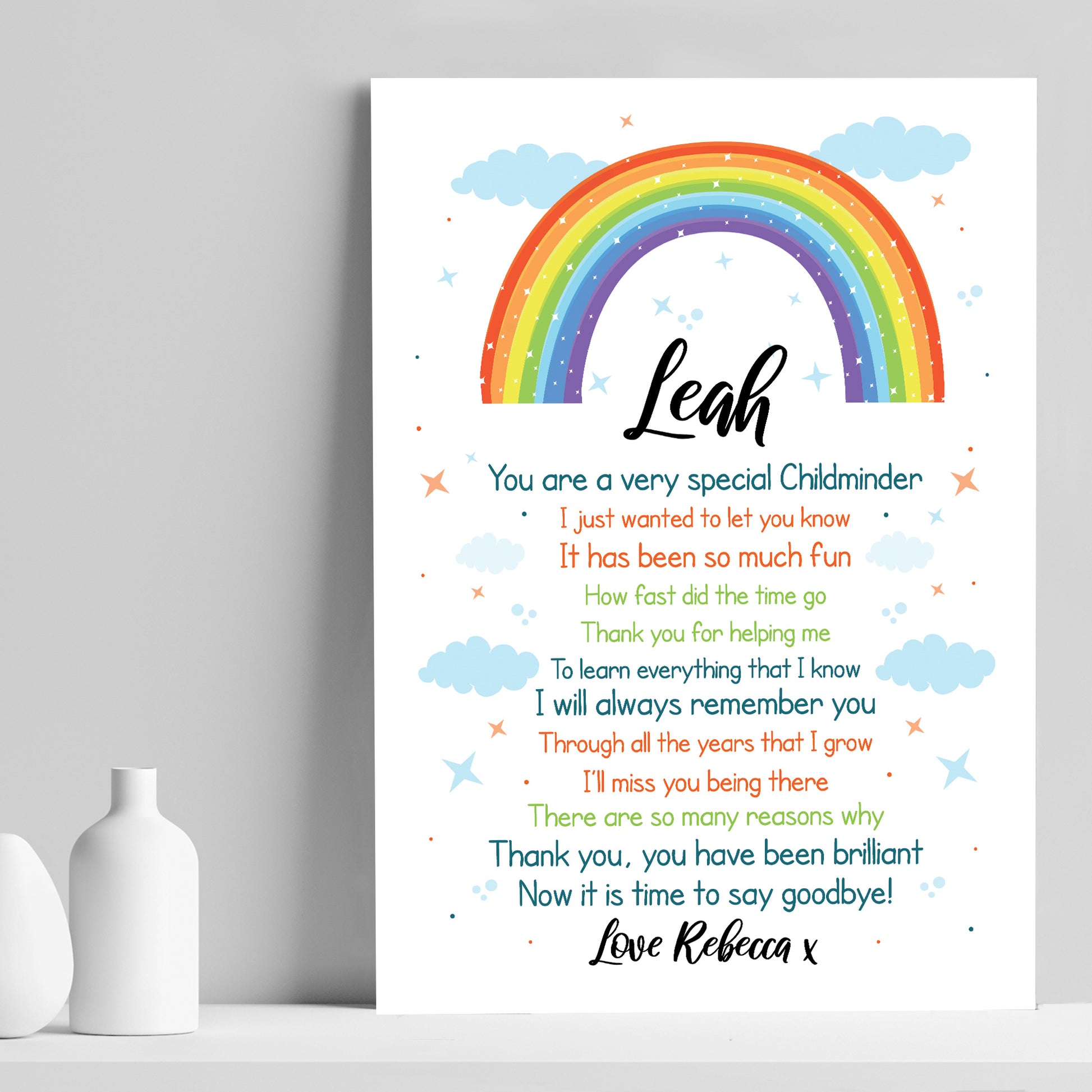 Personalised Rainbow Childminder Gift Print Thank You Teacher