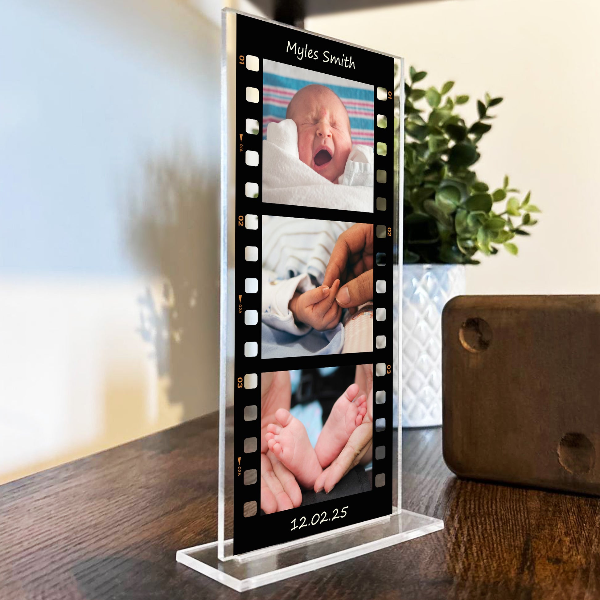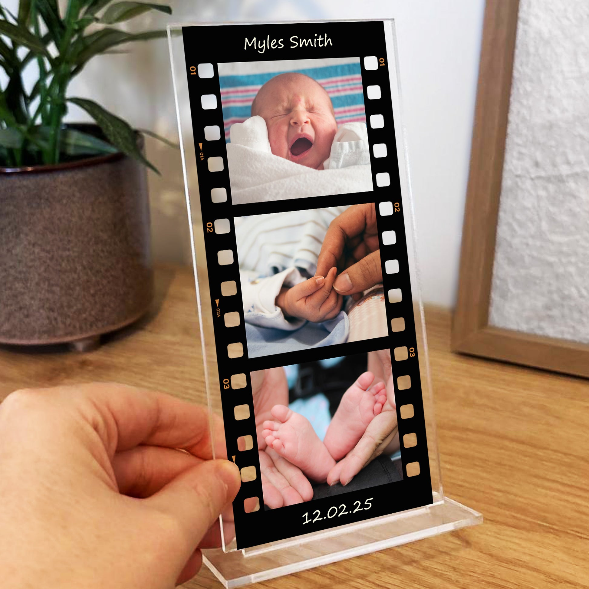 Personalised Retro Photo Film Plaque Baby Photo Collage New Baby