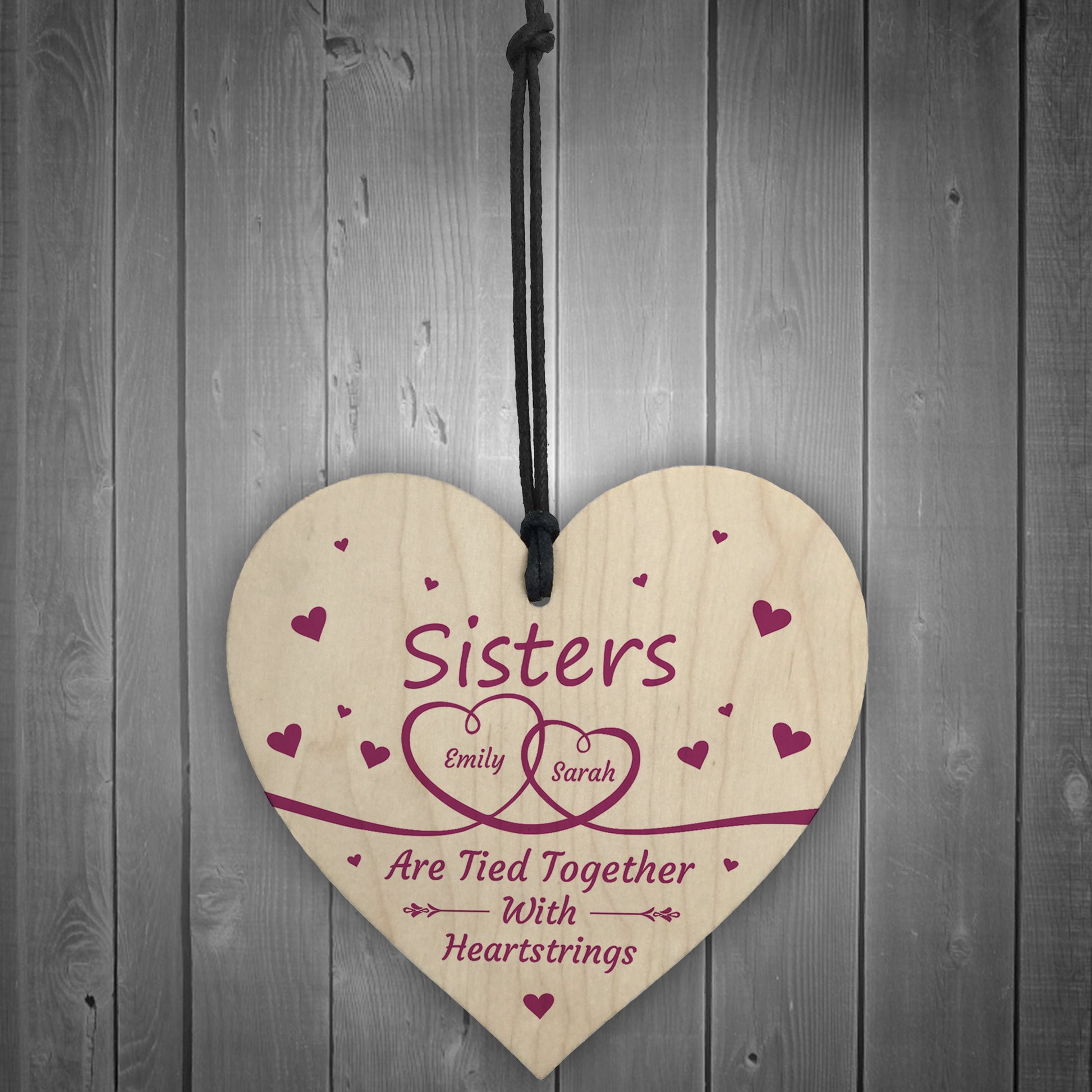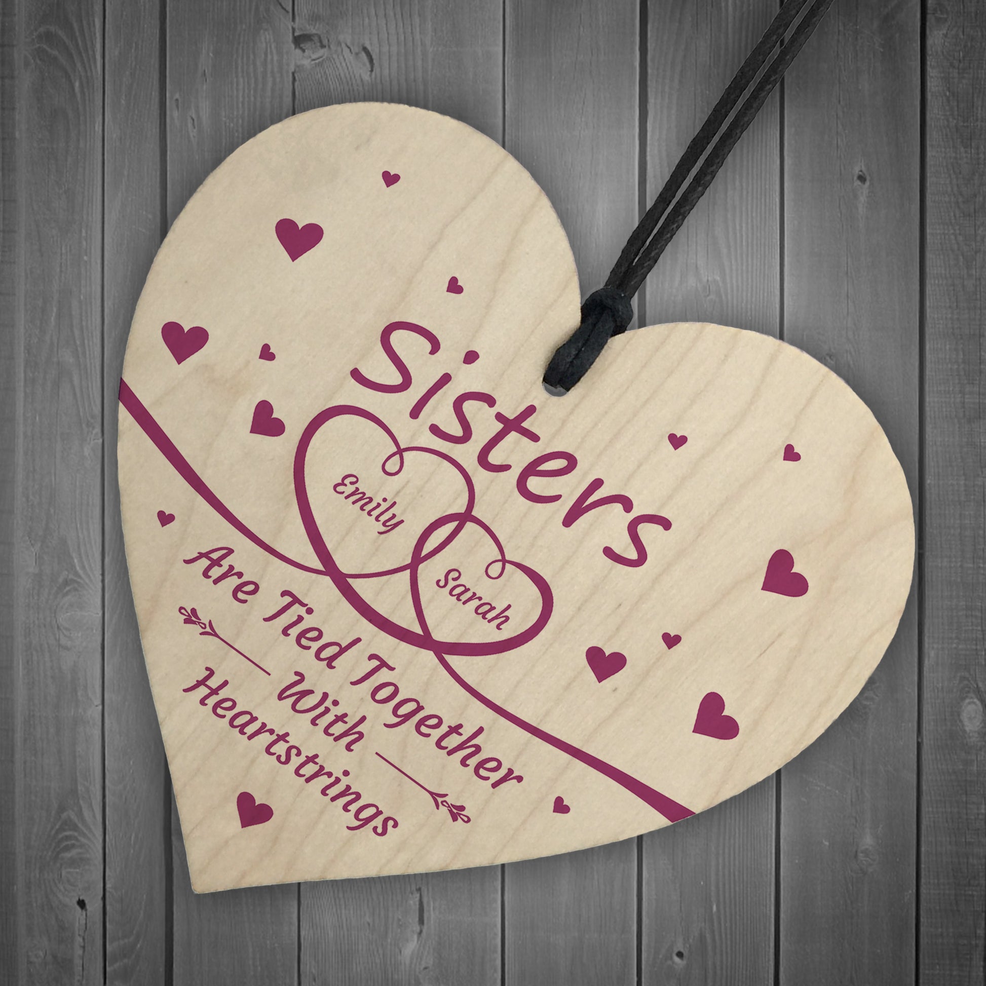 Personalised Sister Gifts Wooden Heart Keepsake Birthday Gifts