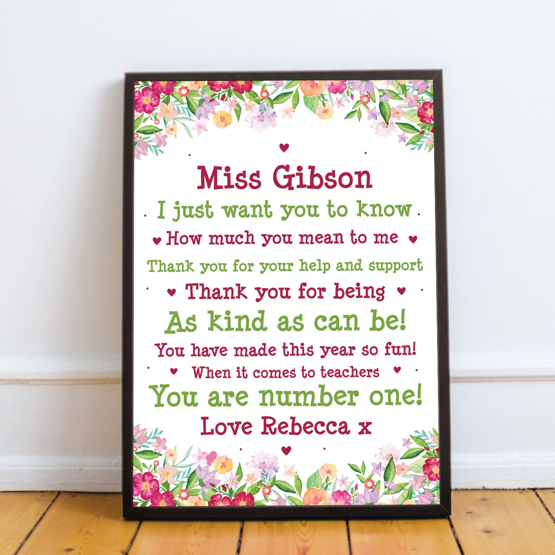 Personalised Teacher Framed Print Gift Leaving School Nursery