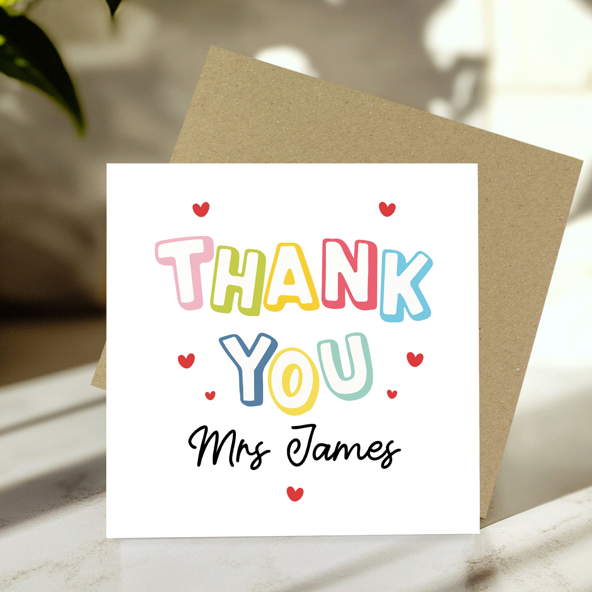 Personalised Teacher Thank You Cards End of Term Leaving School