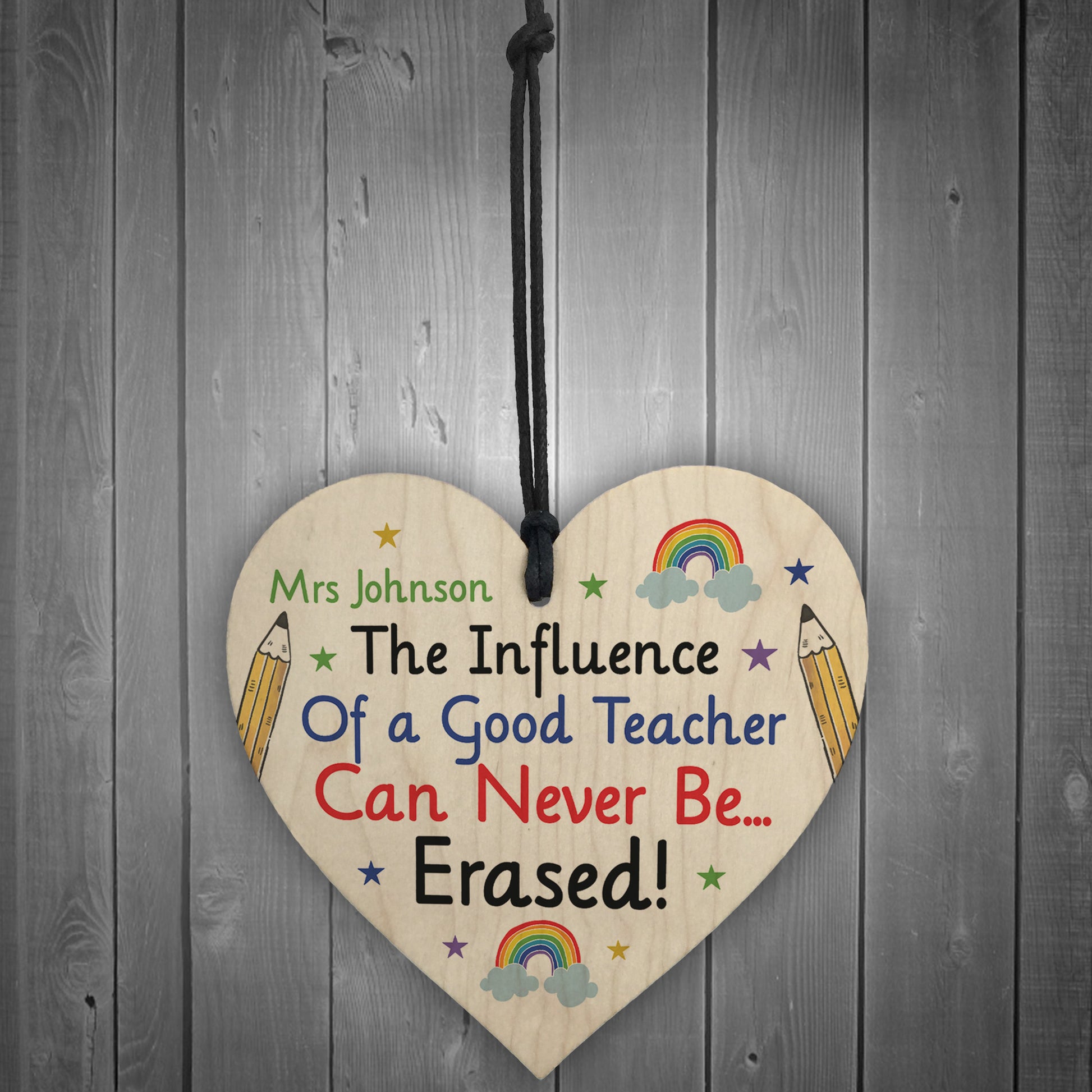 The perfect personalised wooden heart plaque printed with a beautiful message to say thank you to your teacher / teaching assistant for all their helo and support. Give this gift with love and put a smile on your teacher's face every time they read it. Perfect to hang on a wall, a kitchen or coat hook or even on the neck of a bottle. Sure to be loved by the lucky recipient.