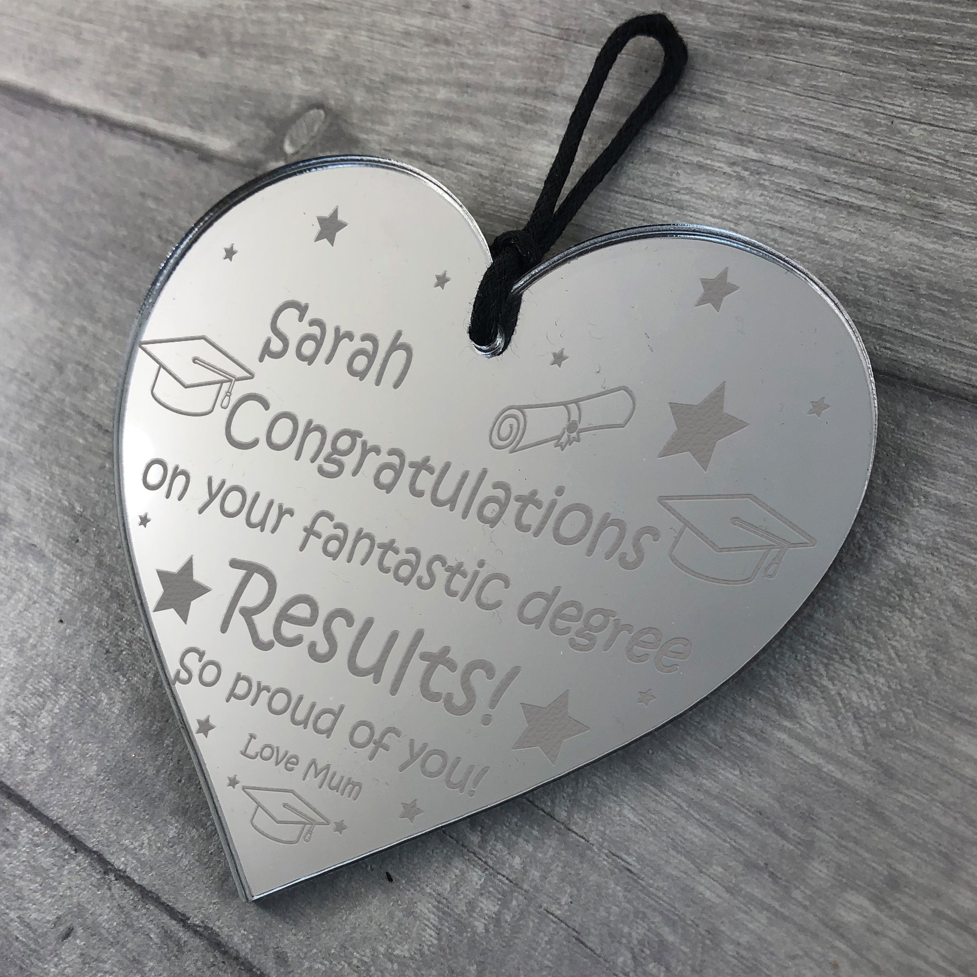 be the perfect gift to say Well Done! A gorgeous engraved heart plaque