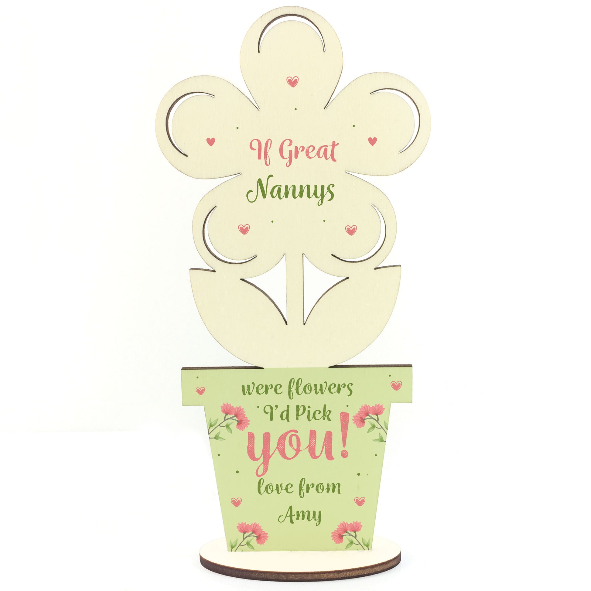 Personalised Wood Flower Birthday Christmas Gift For Great Nanny