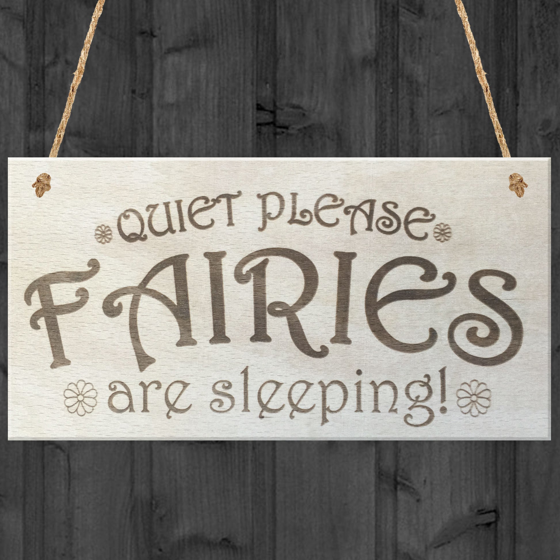 Quiet Fairies Are Sleeping Wooden Hanging Plaque Garden Sign