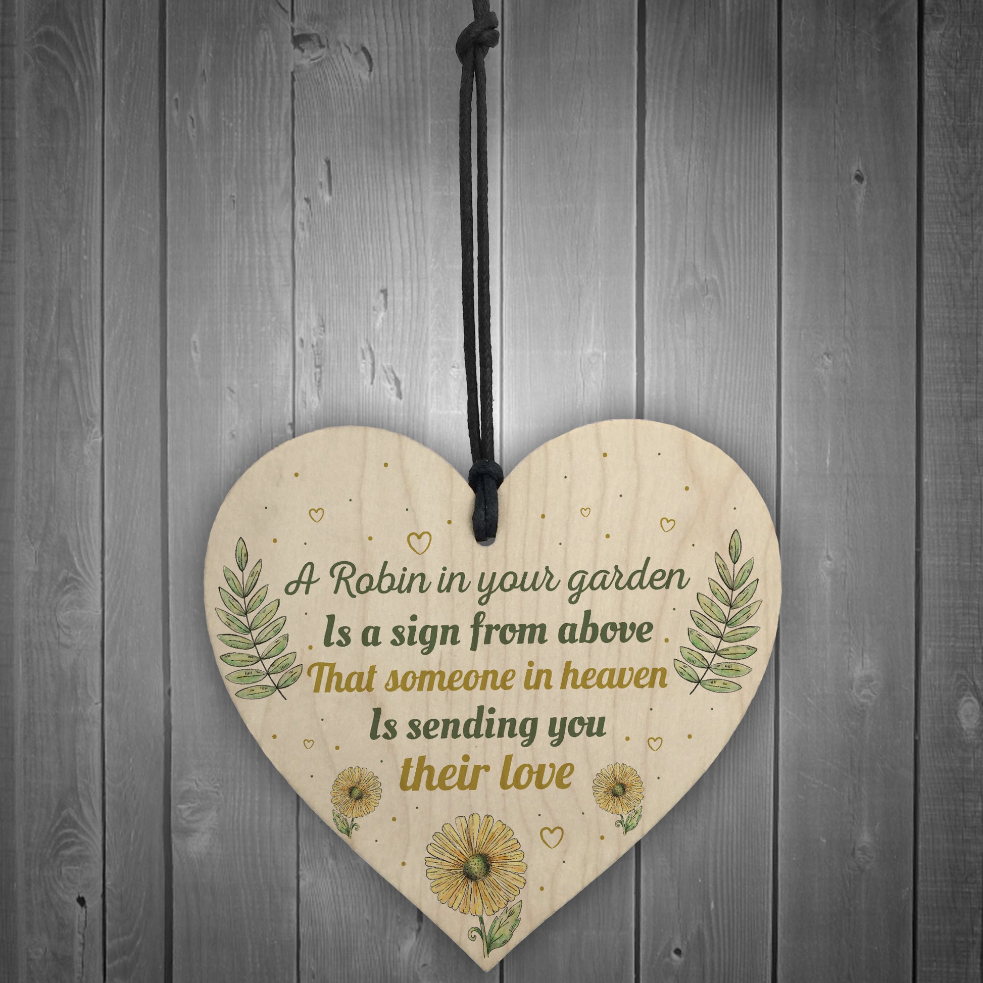 Robin Garden Memorial Grave Wood Heart Sign Rememberance