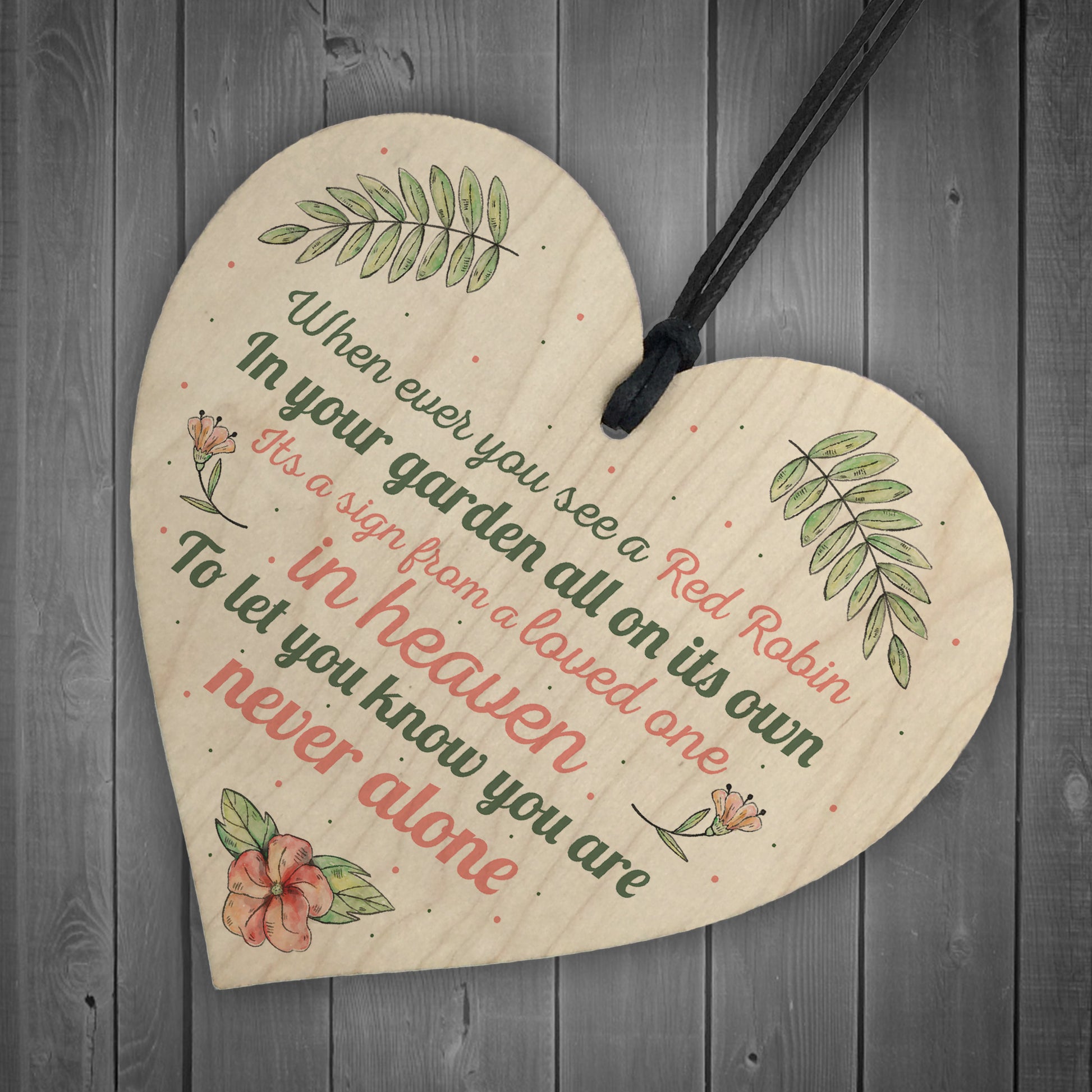 Robin Memorial Bereavement Garden Wood Heart Sign Plaque Gift