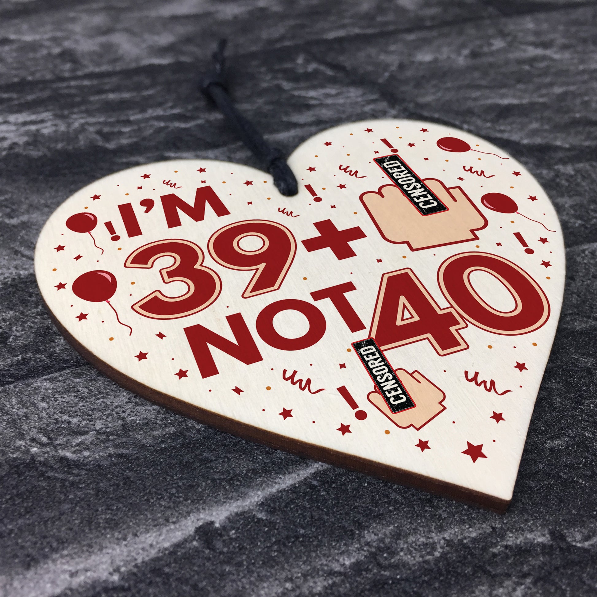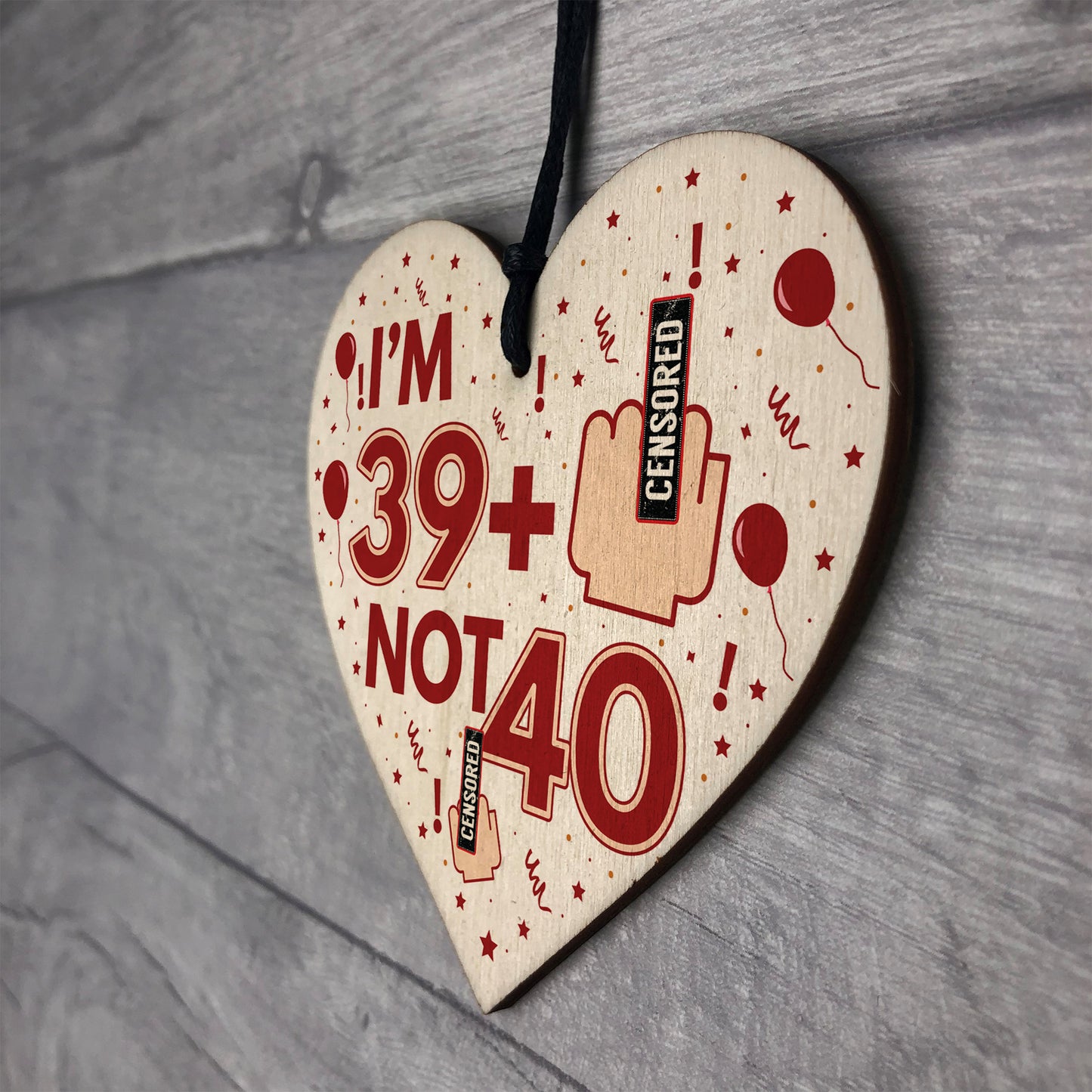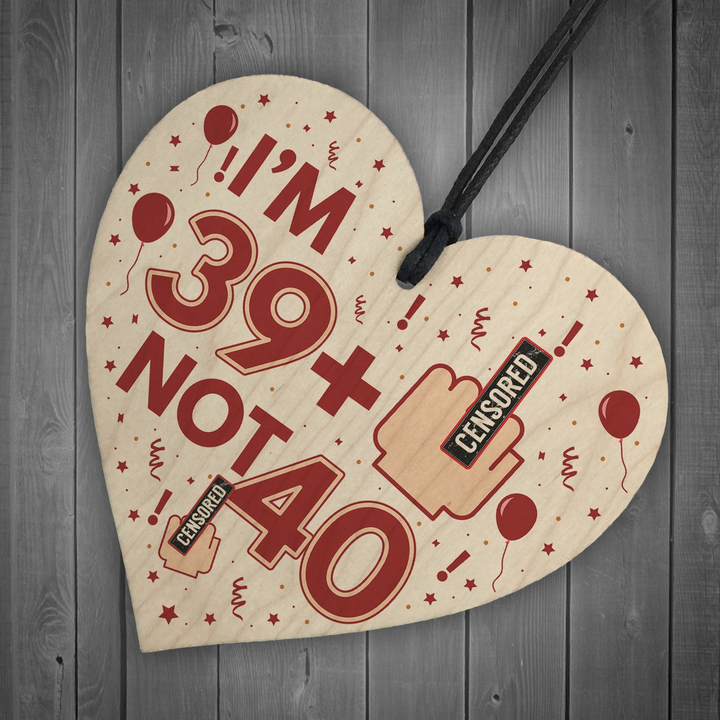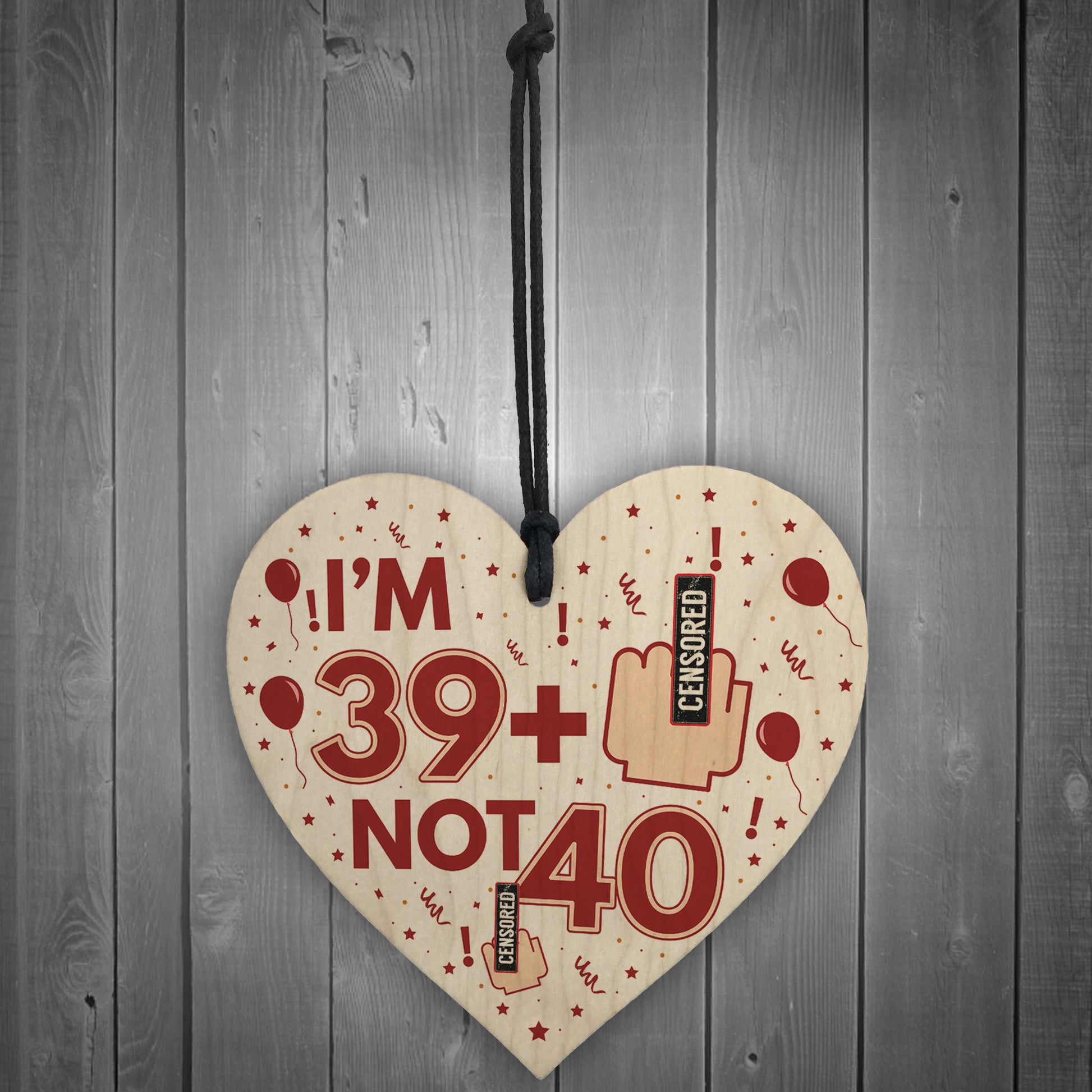 Rude 40th Birthday Decoration Wooden Heart Funny Novelty Gift