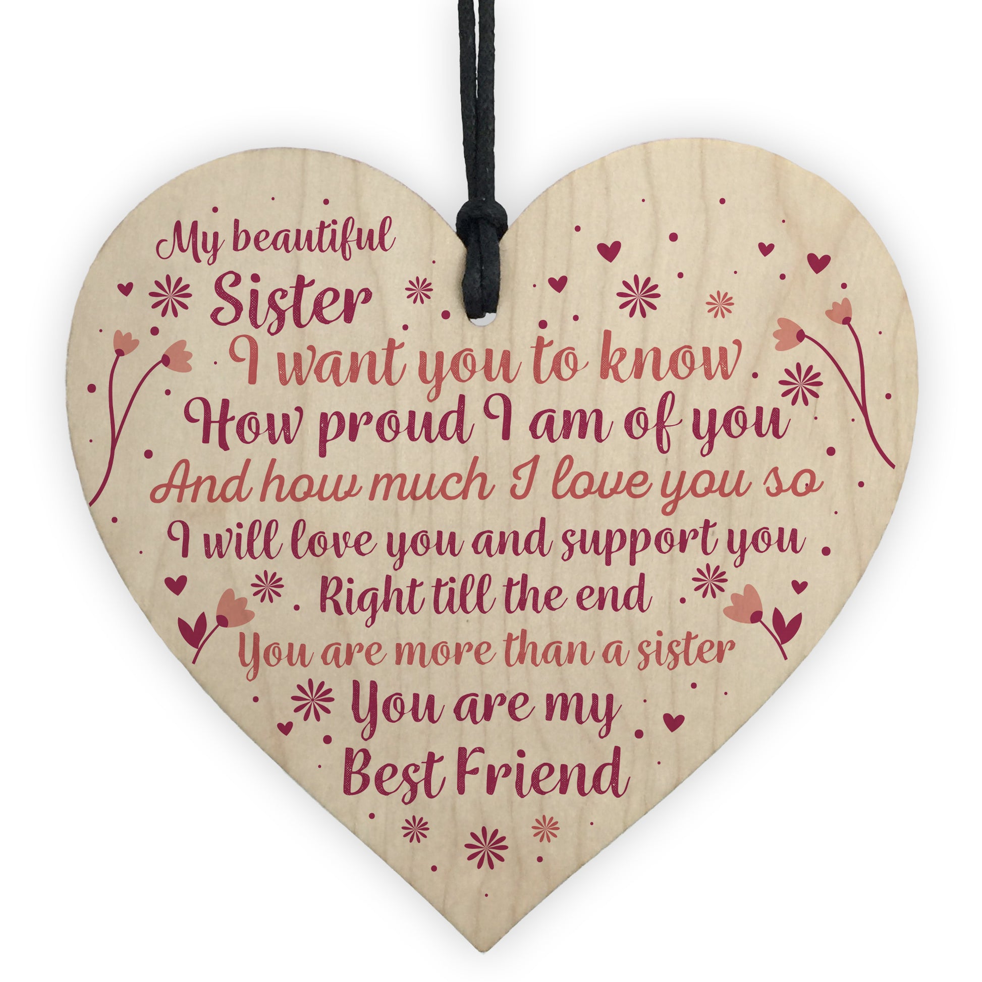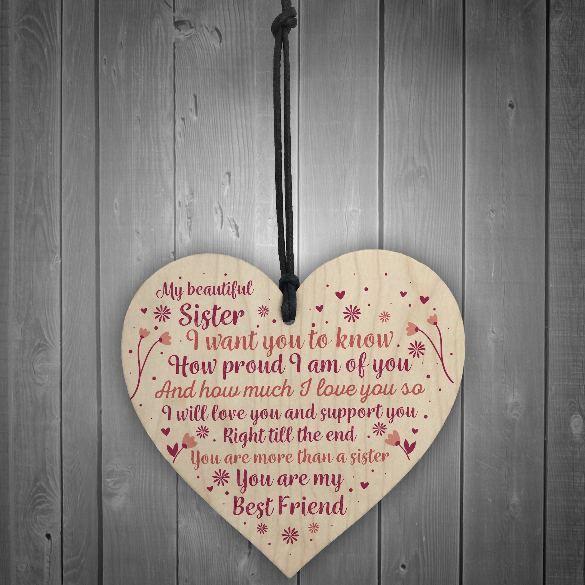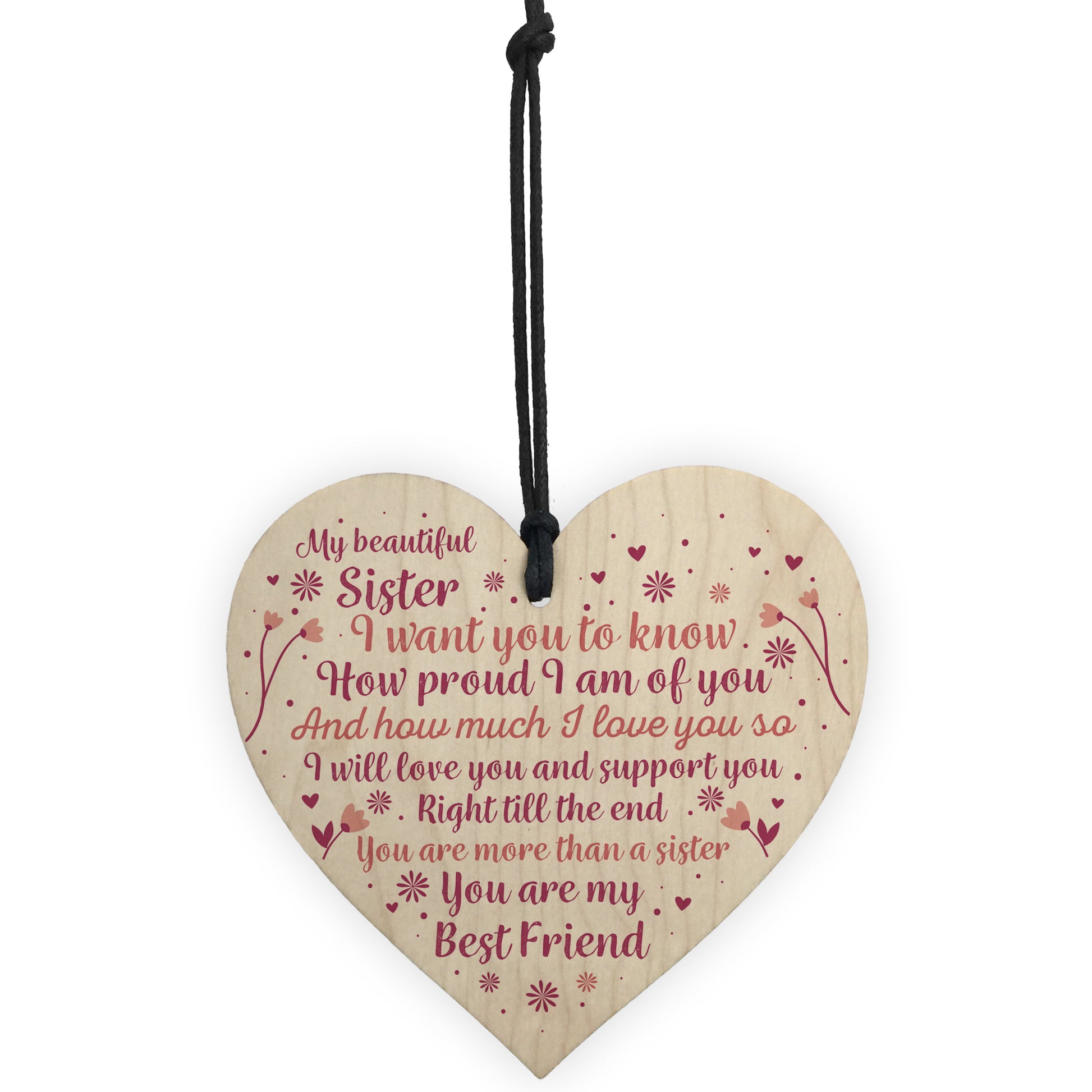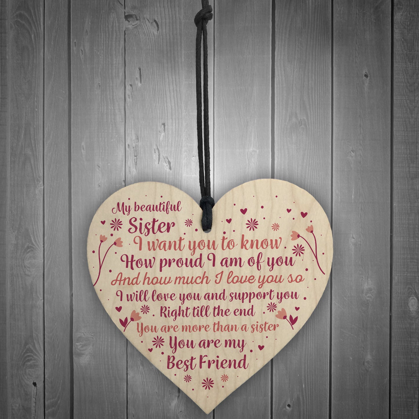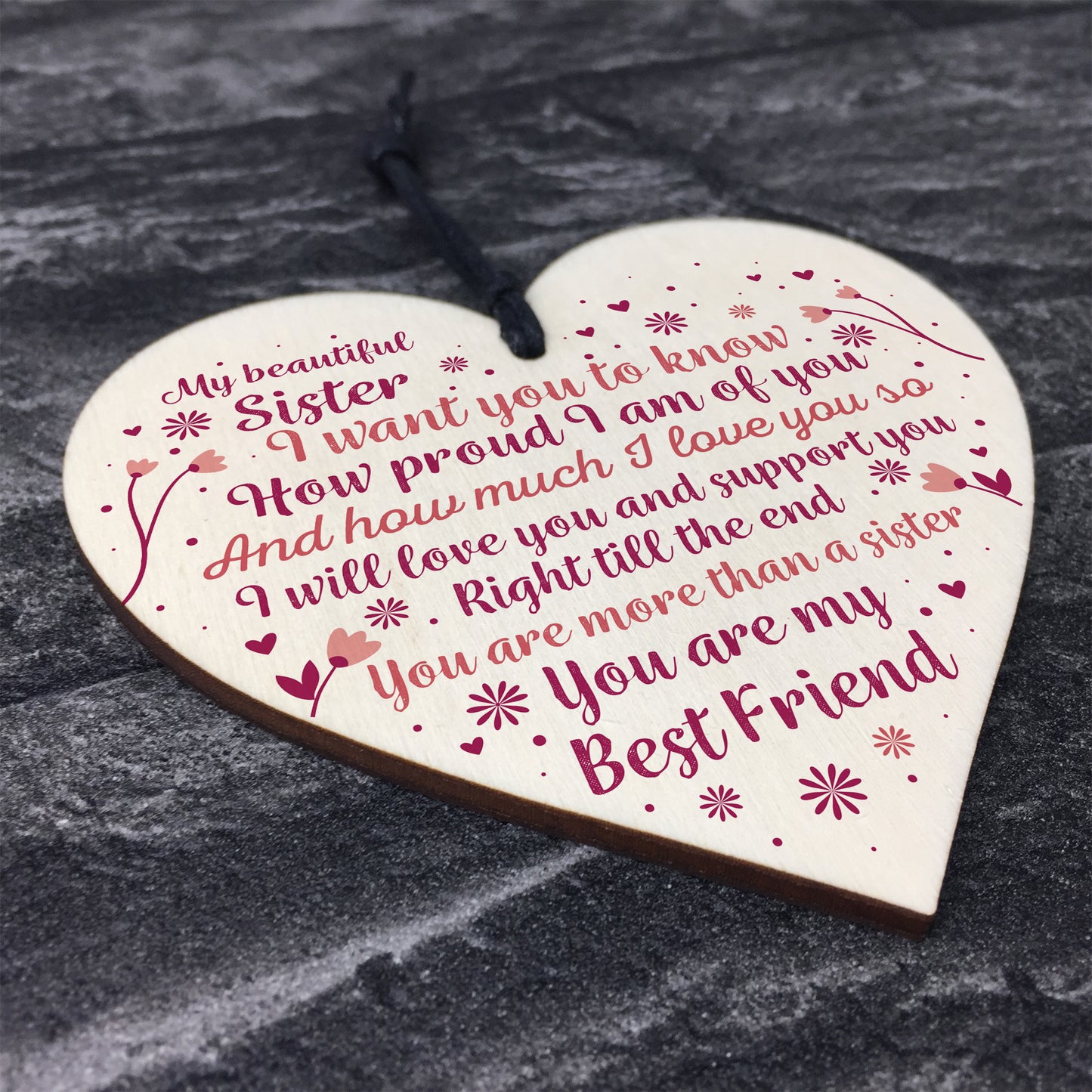This gorgeous wooden heart plaque printed with this beautiful message would be a lovely gift for your Sister on her birthday or for christmas this year. Give this gift with love and put a