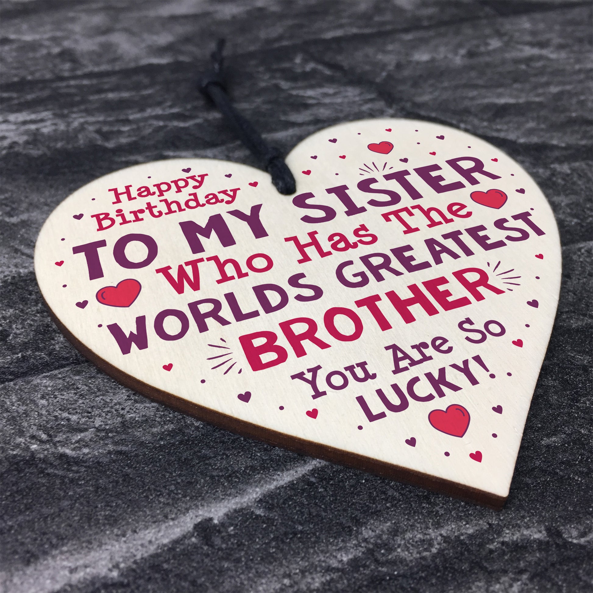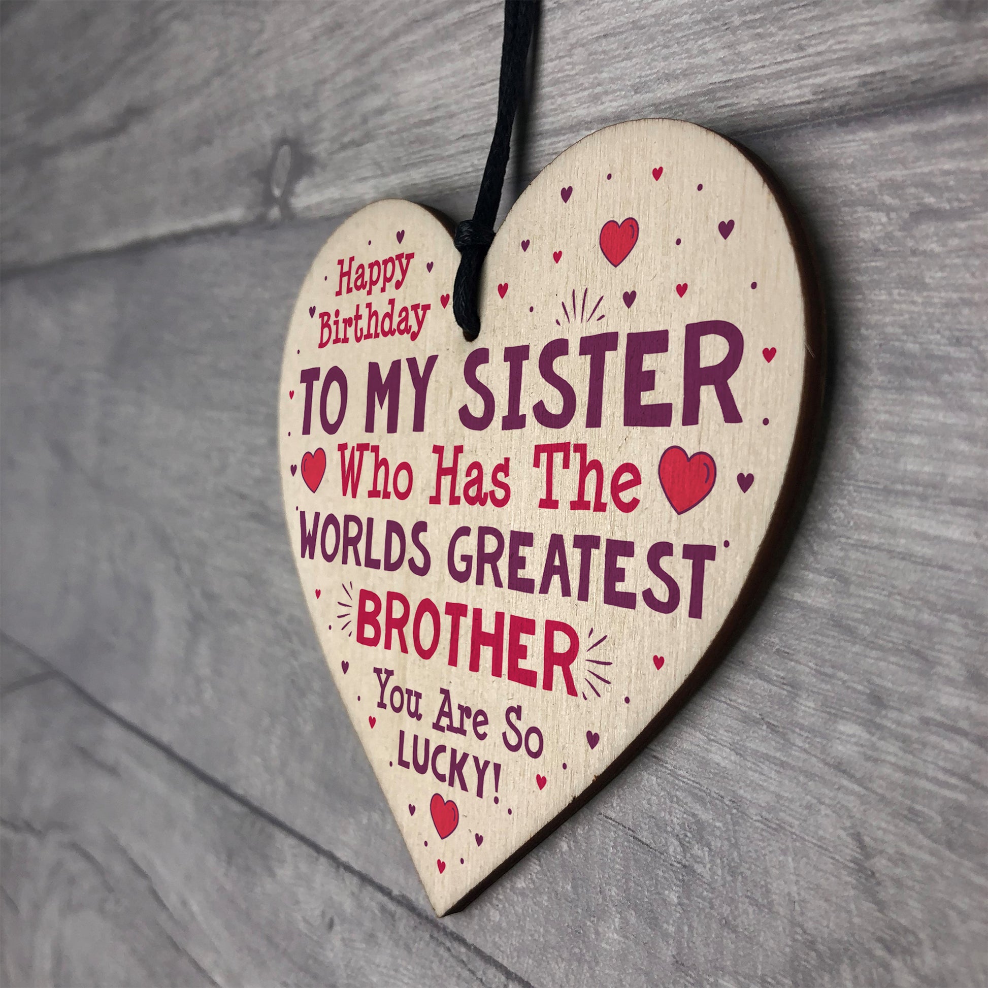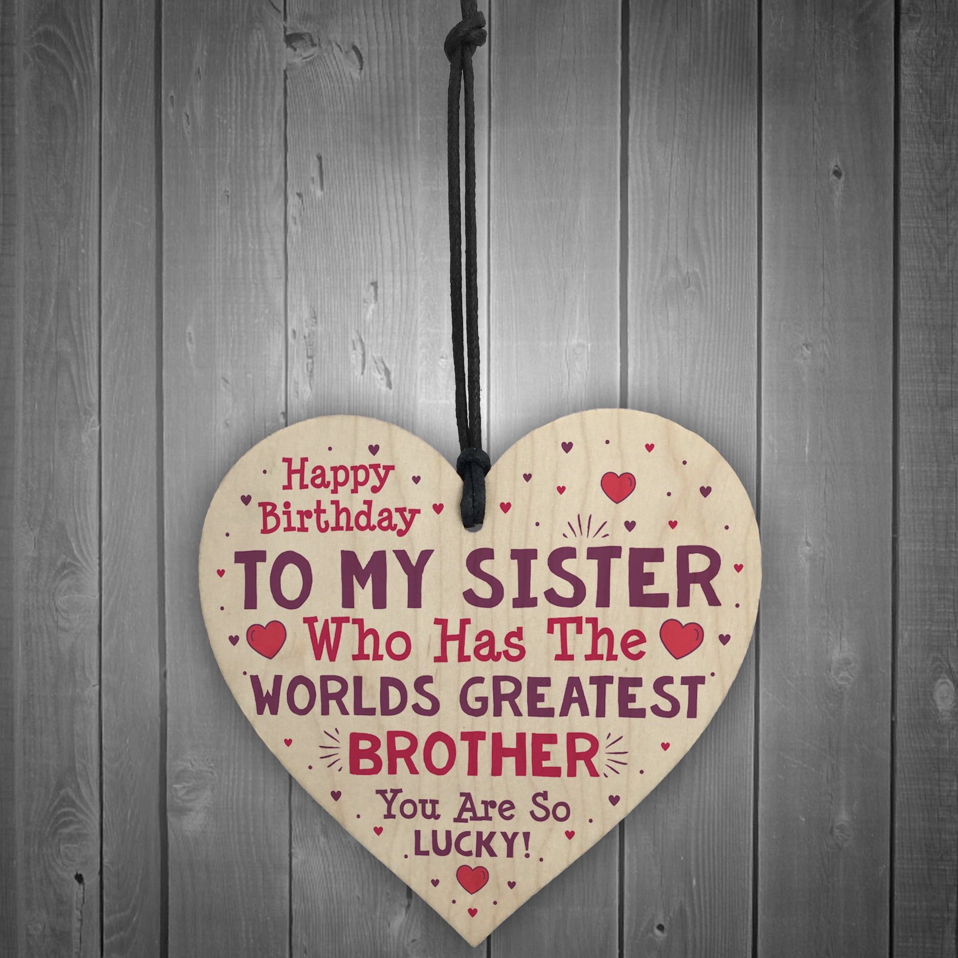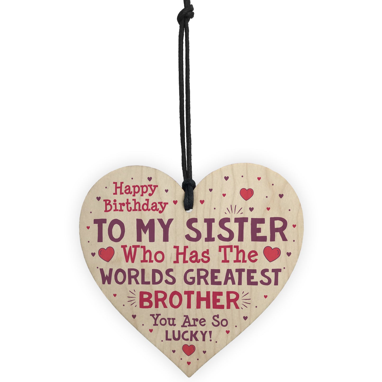 Sister Birthday Gift Funny Novelty Wooden Heart Sign Card Gift