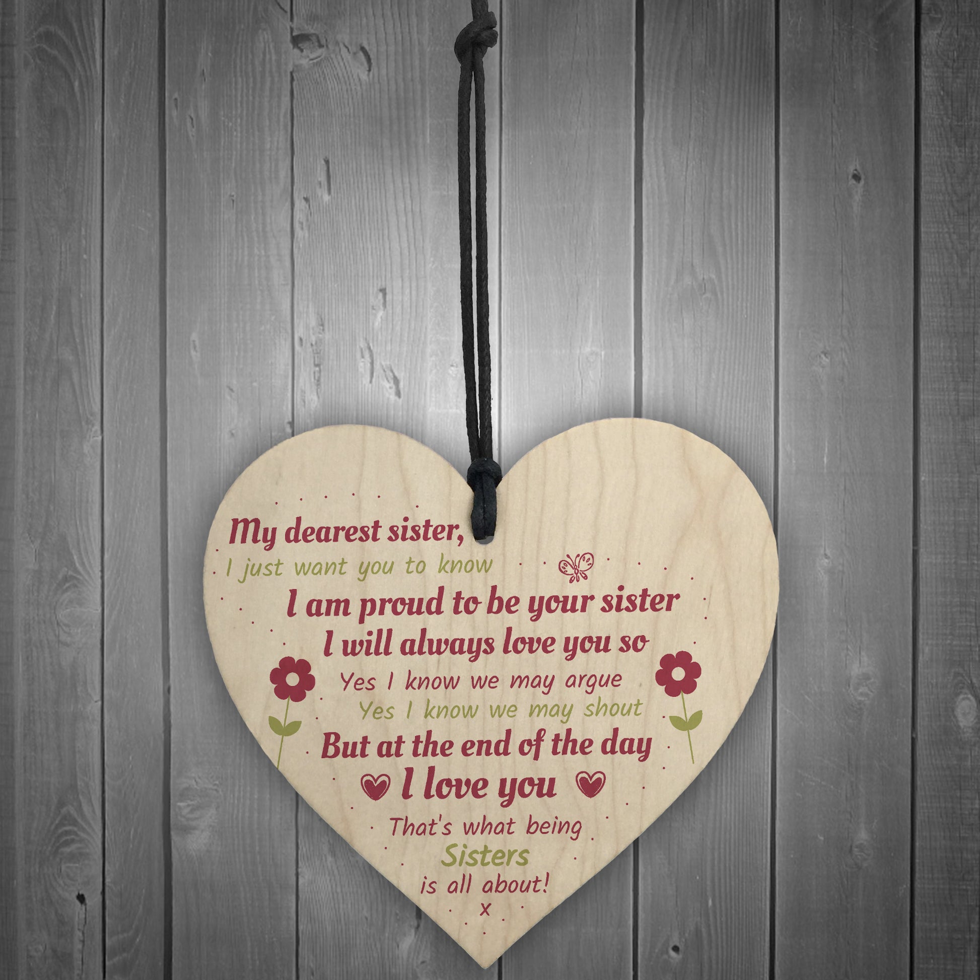 Sister Gift Birthday Gift For Sister Keepsake Poem Wooden Heart