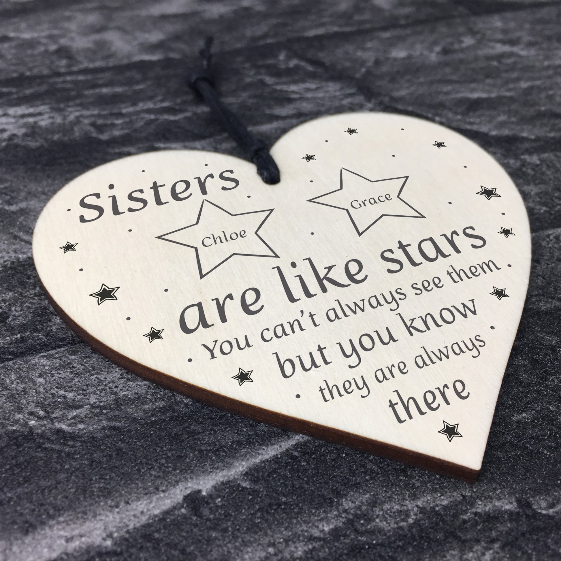 Sisters Are Like Stars Wooden Heart Thank You Gift For Birthday