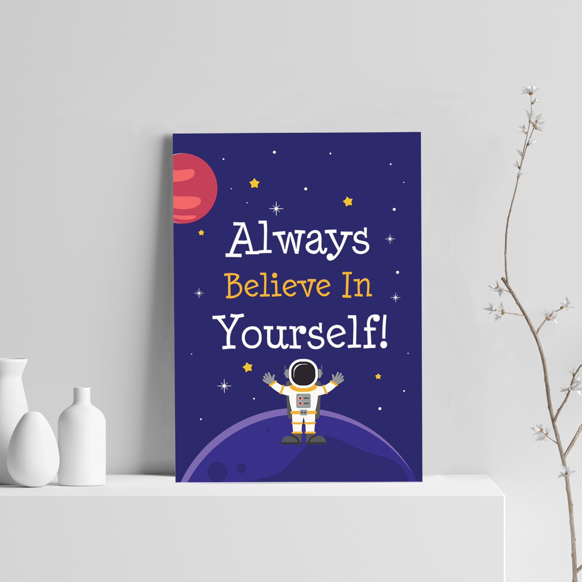 Space Theme Print For Boys Bedroom Cute Wall Art Gift For Son