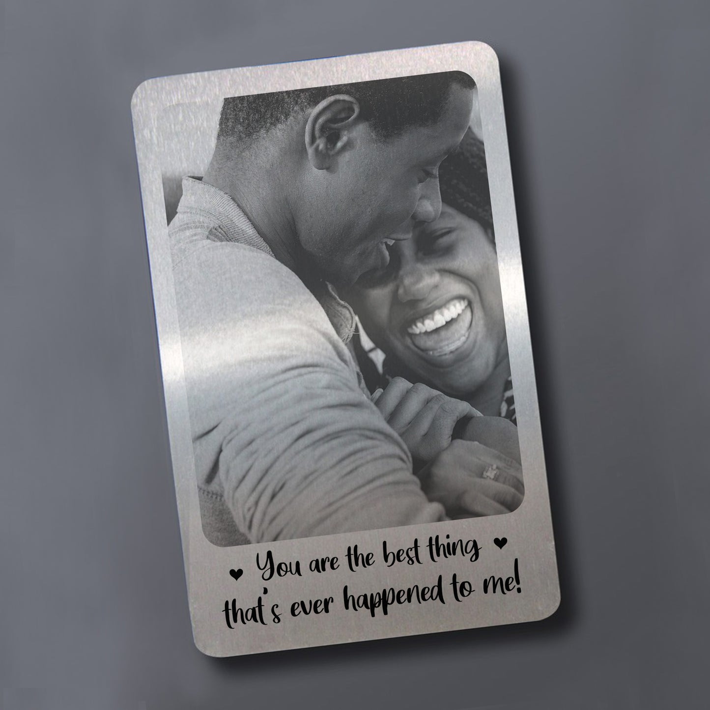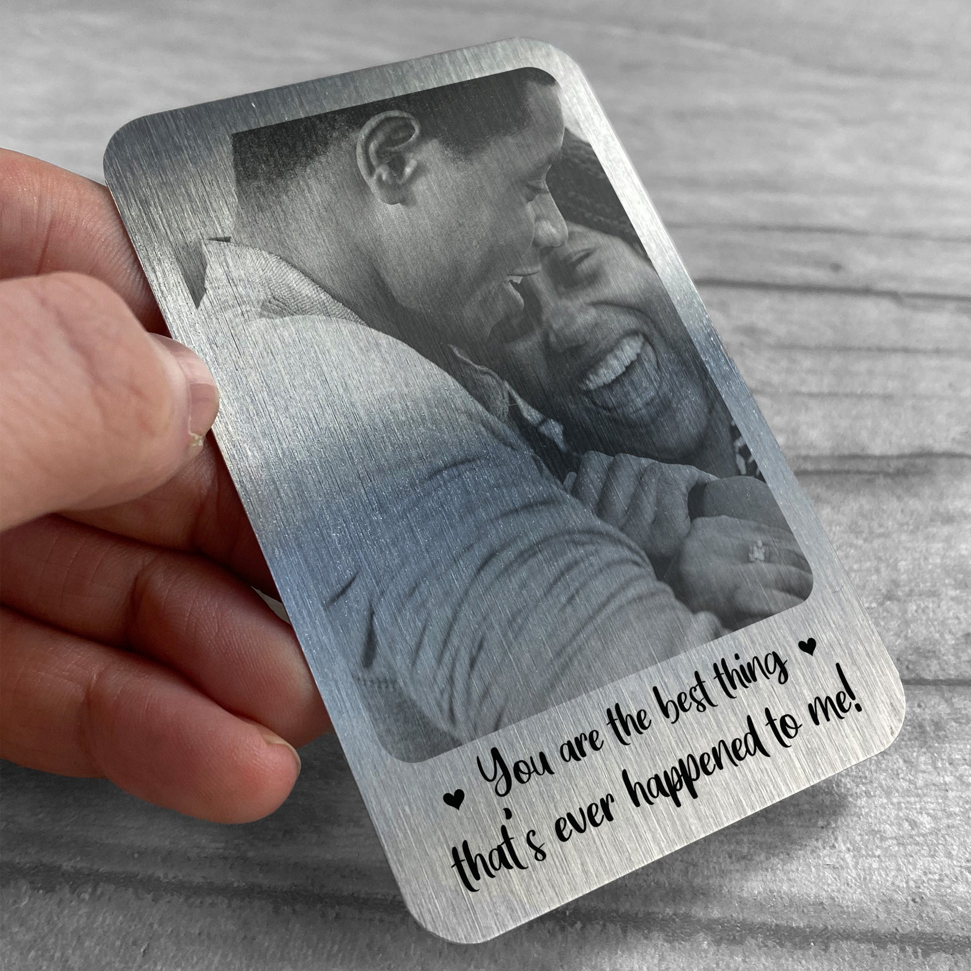 A beautifully printed metal wallet card with a personalised touch! A