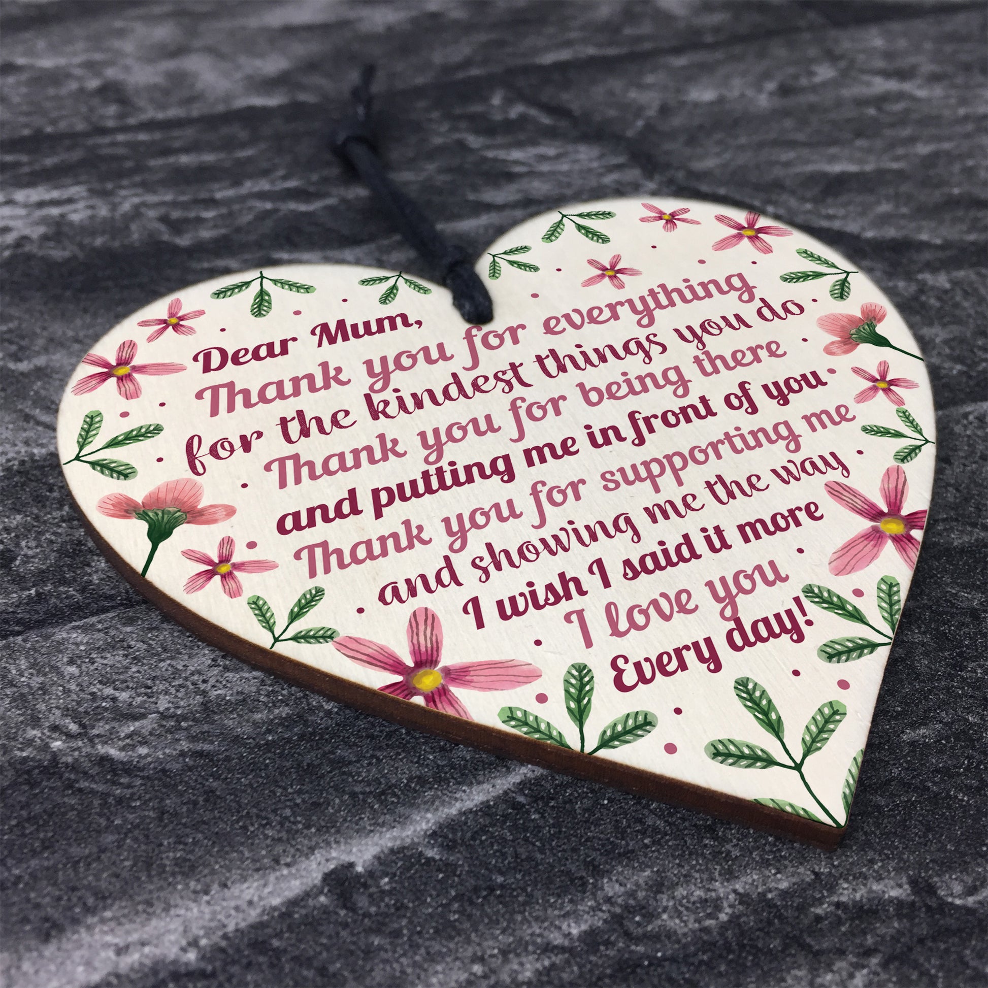 This gorgeous wooden heart plaque printed with this beautiful message would be a Special Mother's Day Gift! Lovely Gift For Mum! Mother's Day Card! Mum Birthday Gift! Give this gift with love and put a smile on your Mum's face every time she reads it.