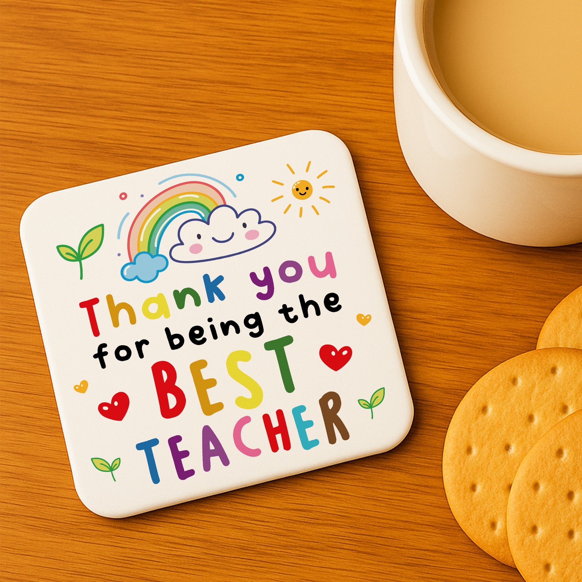 Whether you're saying Goodbye, Giving A Thank You, or simply want to show someone you're thinking of them, this coaster is a thoughtful and personal gift idea. It's perfect for your Teacher and it adds a lovely personal touch to their home too.