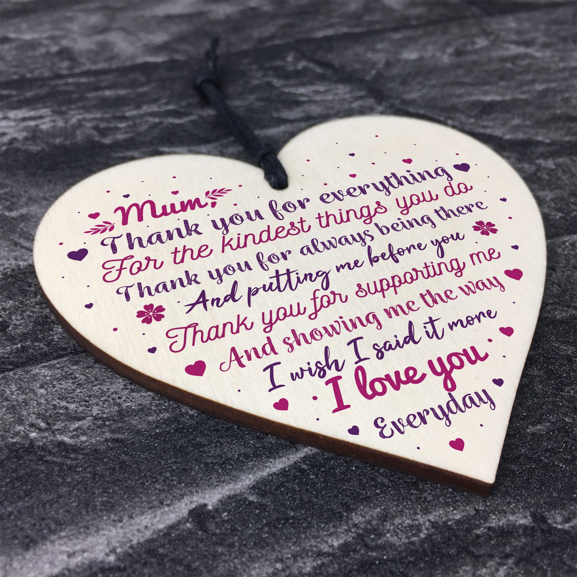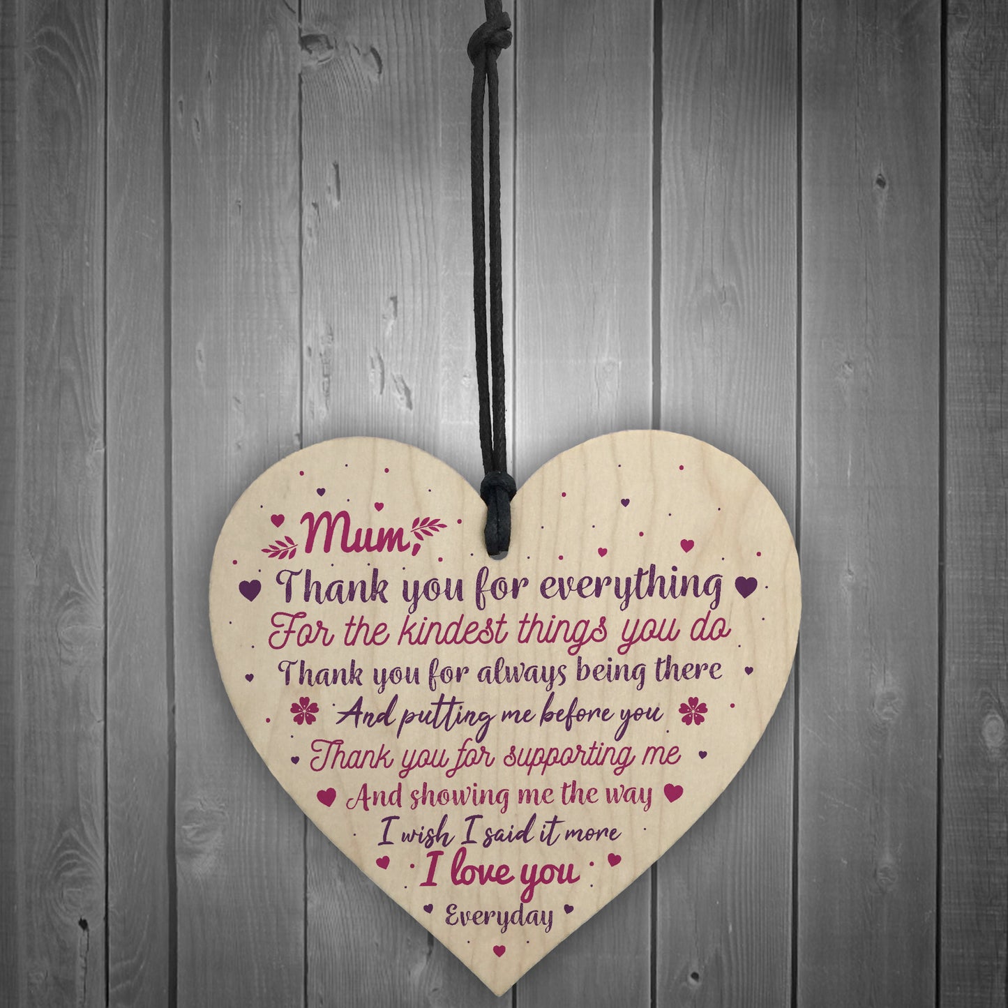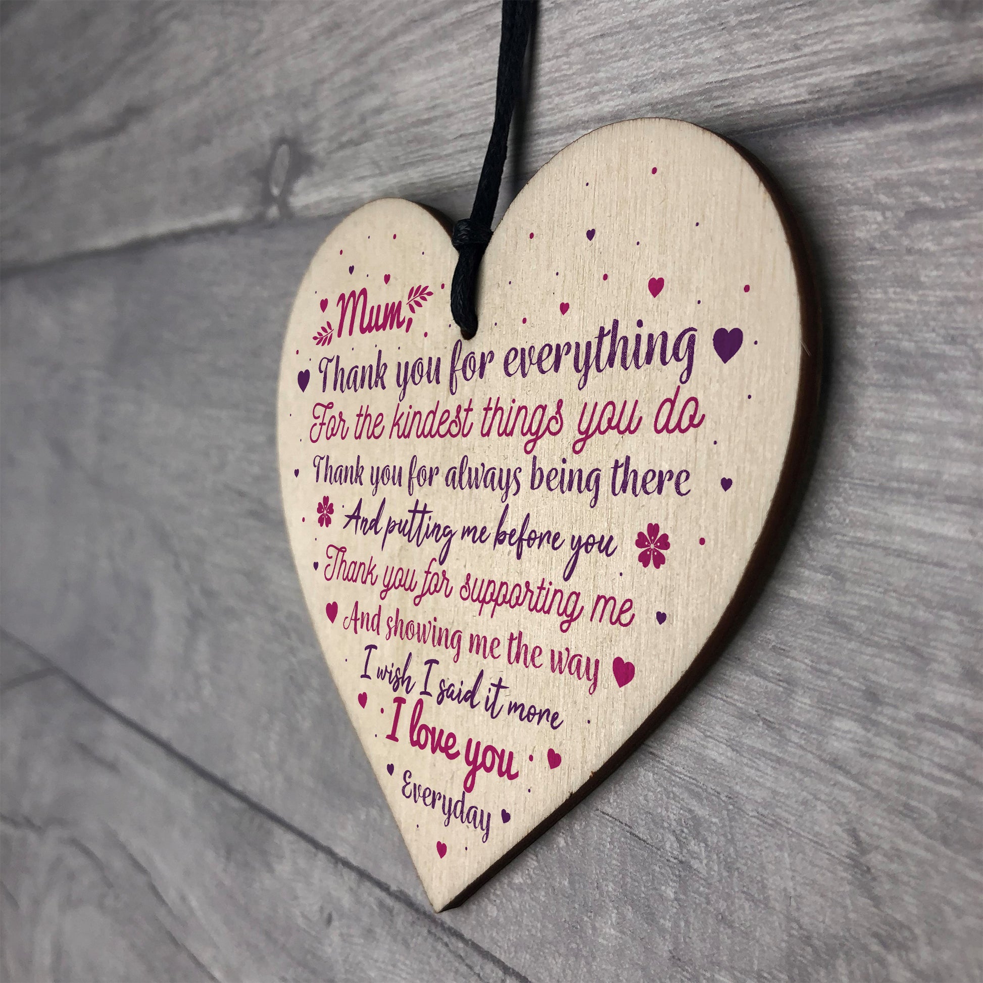 THANK YOU Gift For Mum Mummy Birthday Christmas Heart Plaque