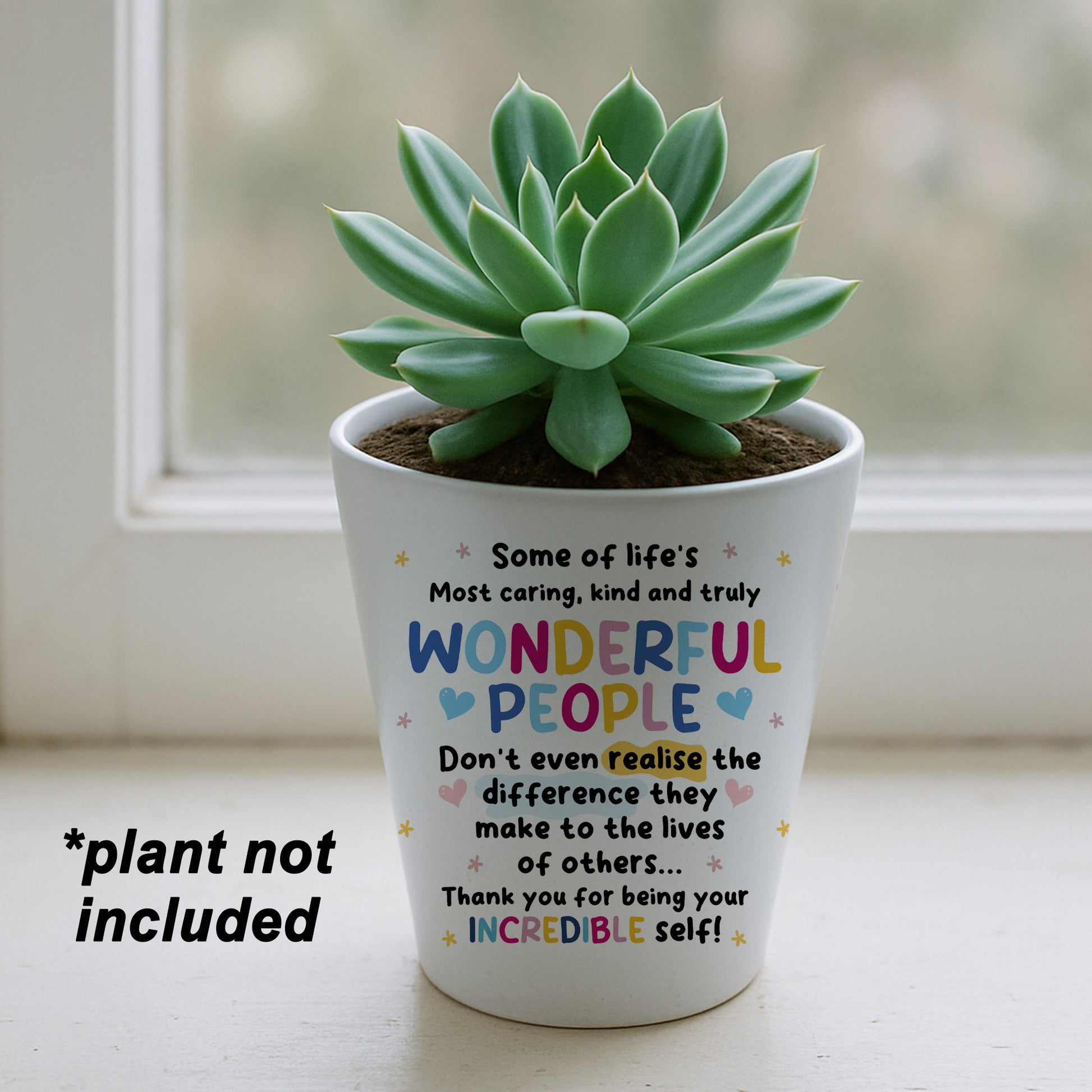 The ULTIMATE Leaving Gift for a Teacher/Teaching Assistant/Mentor/Volunteer/Friend who deserves a blooming reminder of how appreciated they are! Celebrate the special person who made a difference with this beautiful ceramic flower pot, the perfect blend of heartfelt gratitude and everyday charm. This pot is a touching tribute to their amazing contribution.