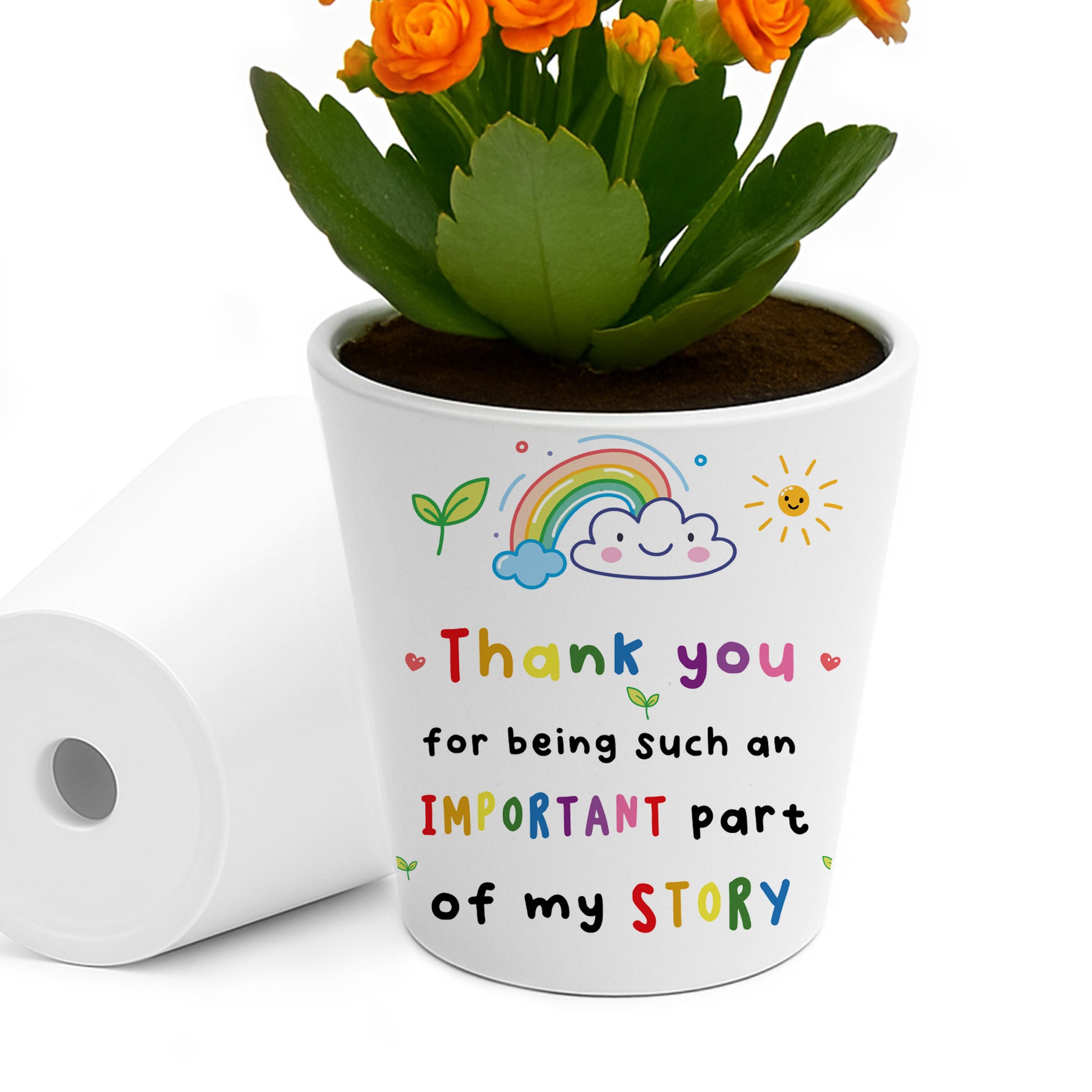 The ULTIMATE Leaving Gift COMBO for a Teacher/Teaching Assistant who deserves a blooming reminder of how appreciated they are! Celebrate the Teacher/Teaching Assistant who made a difference with this beautiful ceramic flower pot and 14.5 x14.5 cm greetings card, the perfect blend of heartfelt gratitude and everyday charm. Whether they've supported little learners or brightened the classroom with their kindness, this pot is a touching tribute to their amazing contribution.