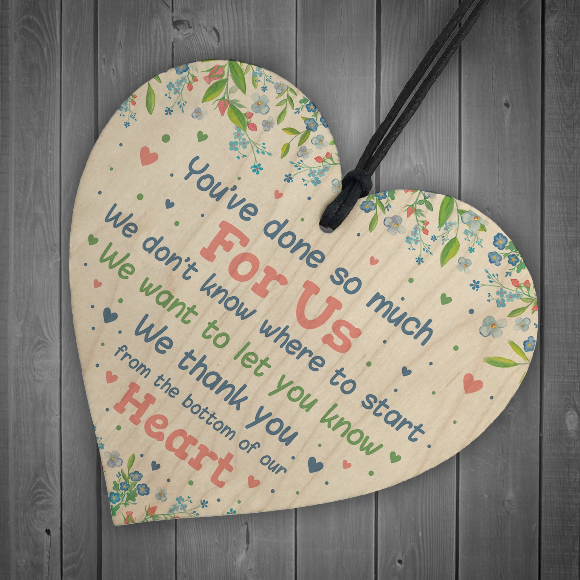 A gorgeous wooden heart plaque printed with a beautiful message to show how thankful you all are for your teacher / teaching assistant / mentor / tutor / childminder / volunteer's help! A lovely sign that they can hang up and treasure for years to come. Give this gift with love and put a smile on the recipient's face every time they read it.