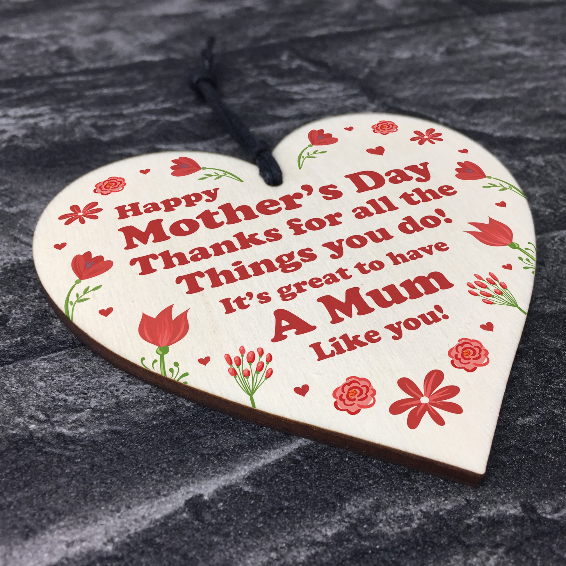 Thank You Gift Wood Heart Mothers Day Gift For Mum From Daughter