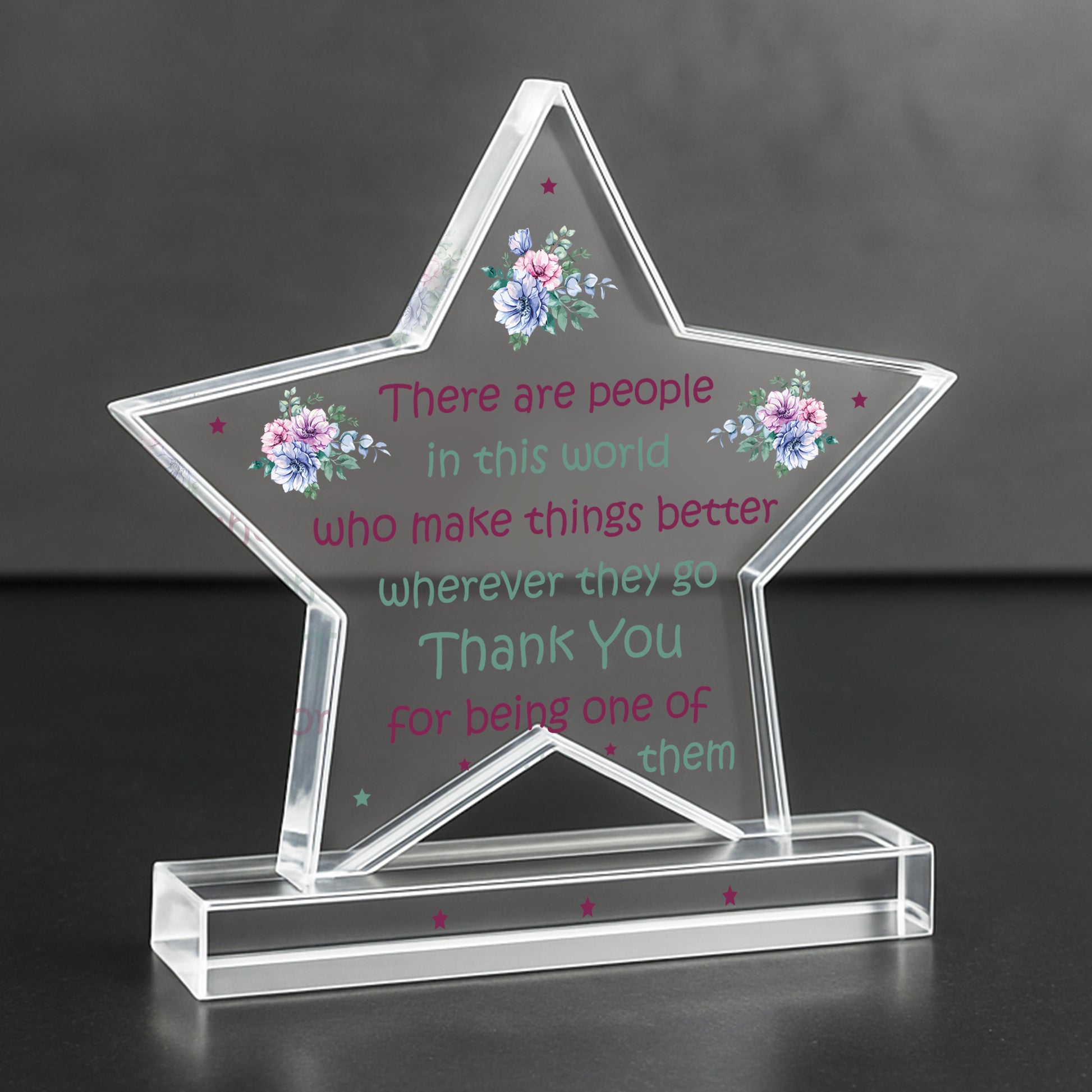 Whether you're expressing thanks to a colleague, friend or loved one, this acrylic star makes a stylish, sentimental and lasting gift that will be cherished for years to come.
