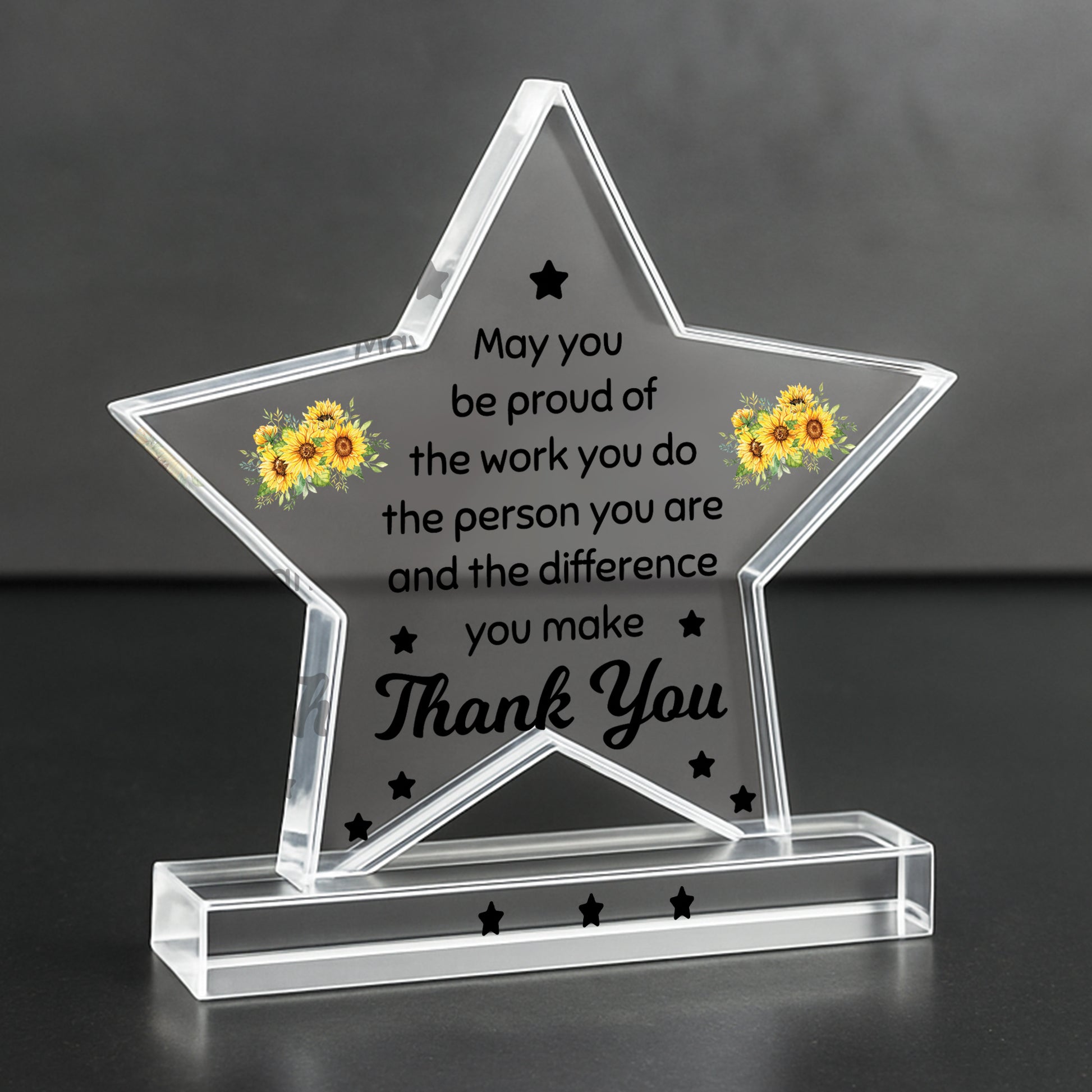 Whether you're expressing thanks to a colleague, friend or loved one, this acrylic star makes a stylish, sentimental and lasting gift that will be cherished for years to come.