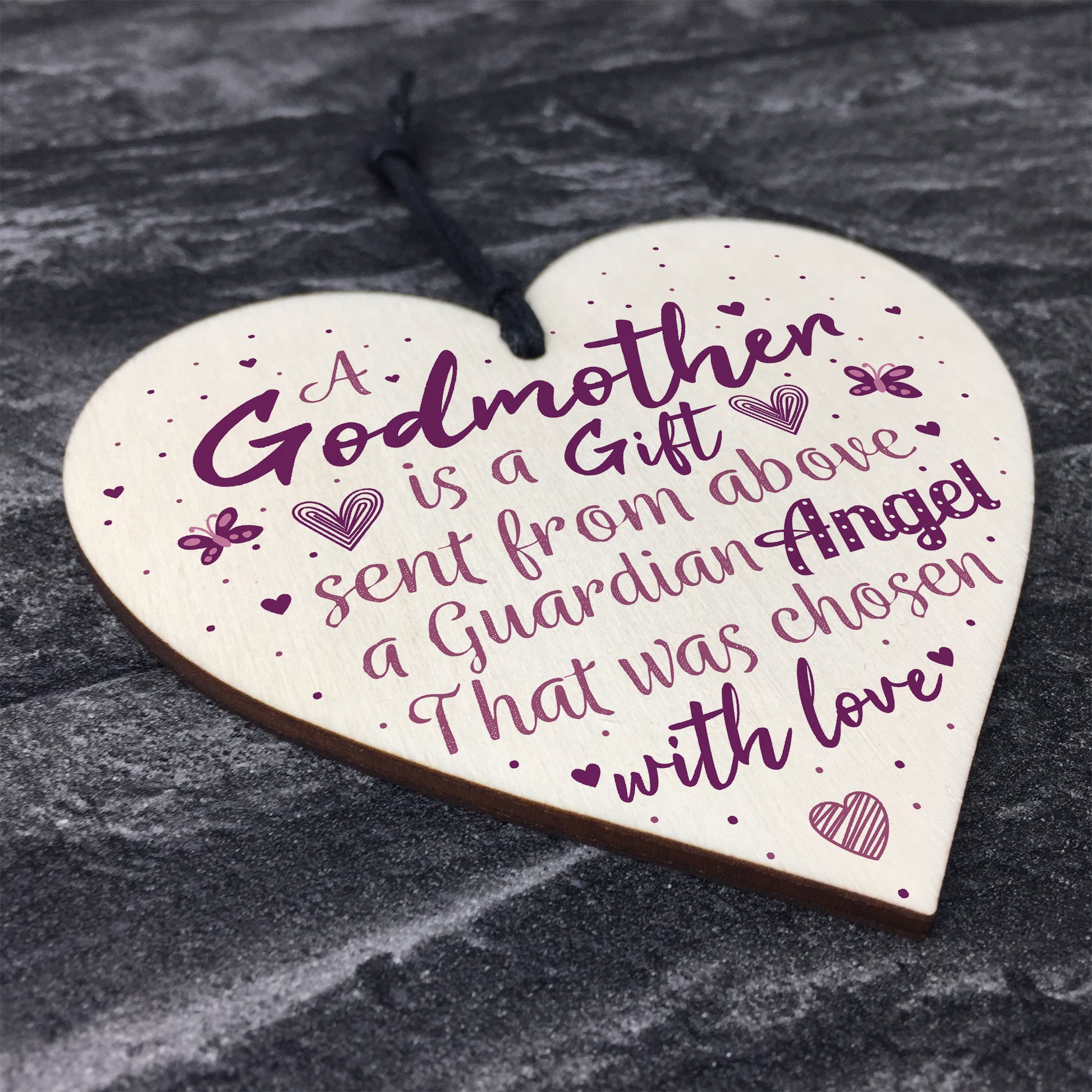 Thank You Godmother Wood Heart Godfather Godparent Gift