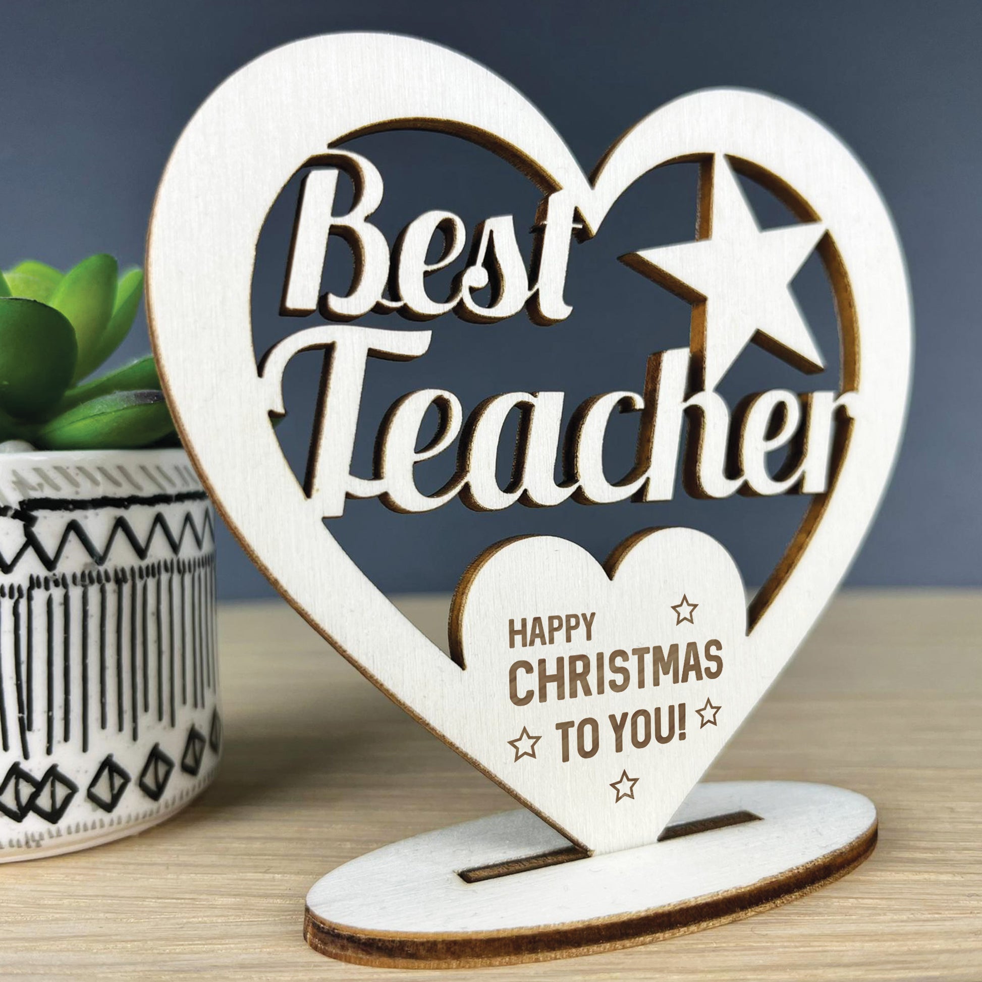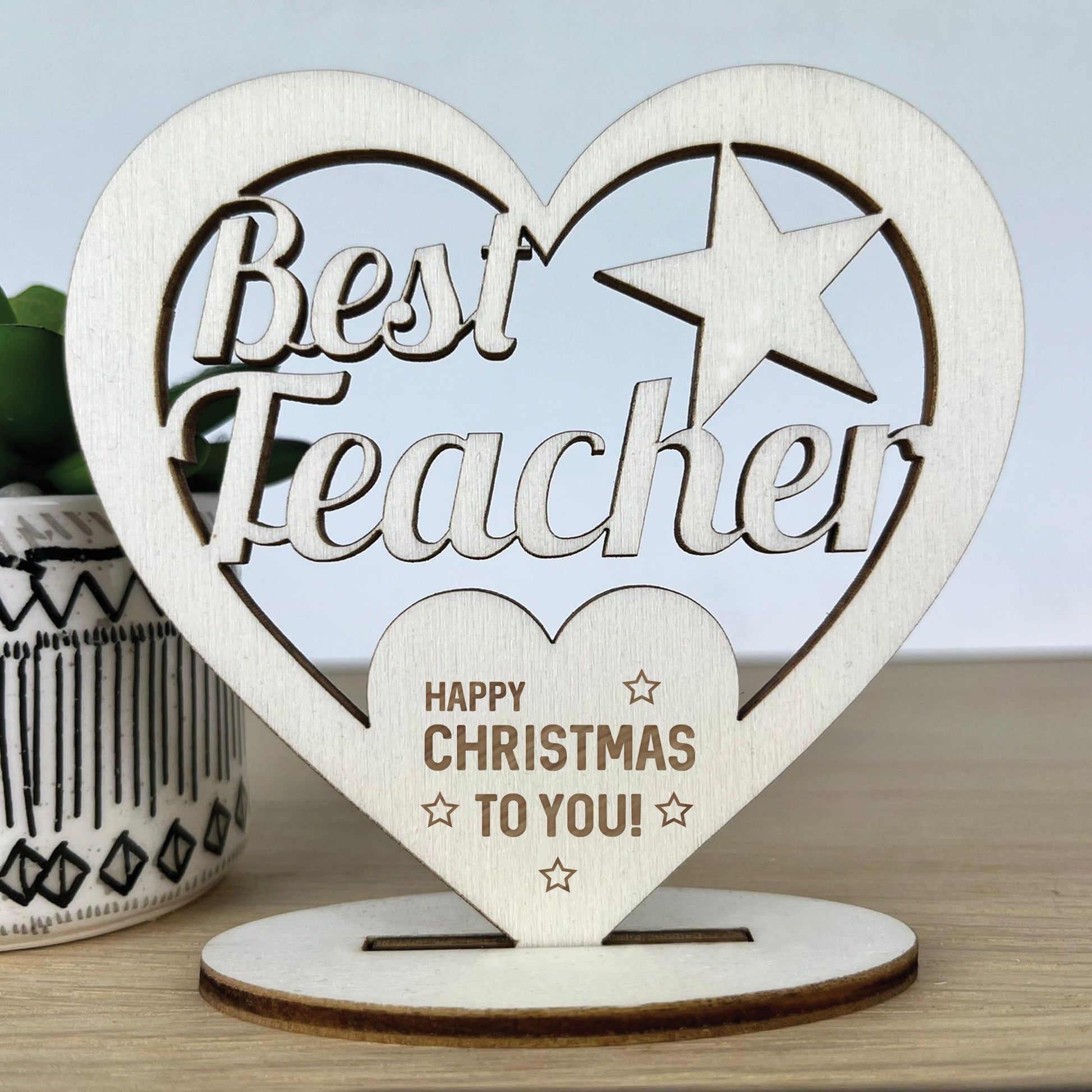 Thank You Teacher Gift Happy Christmas Wood Heart Present