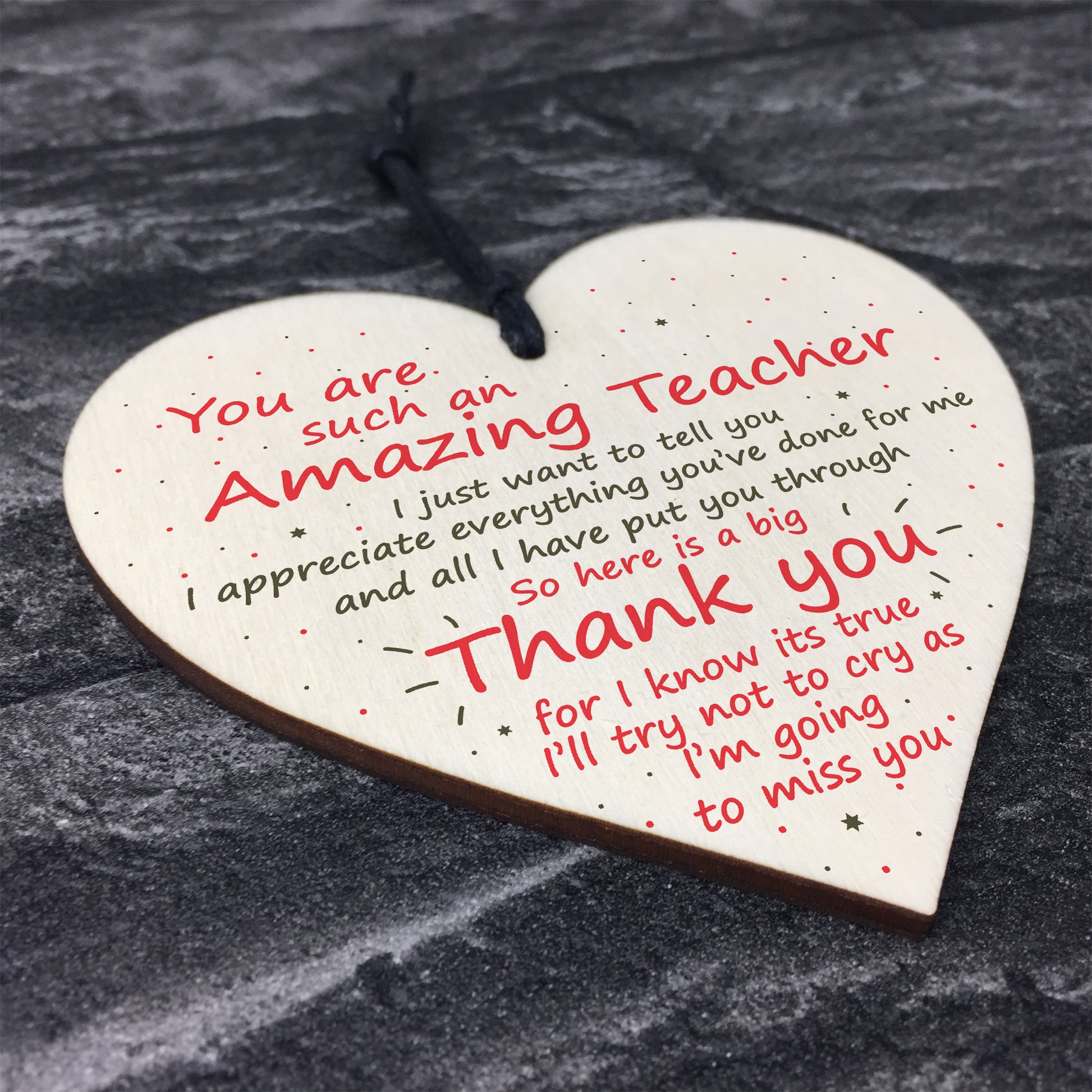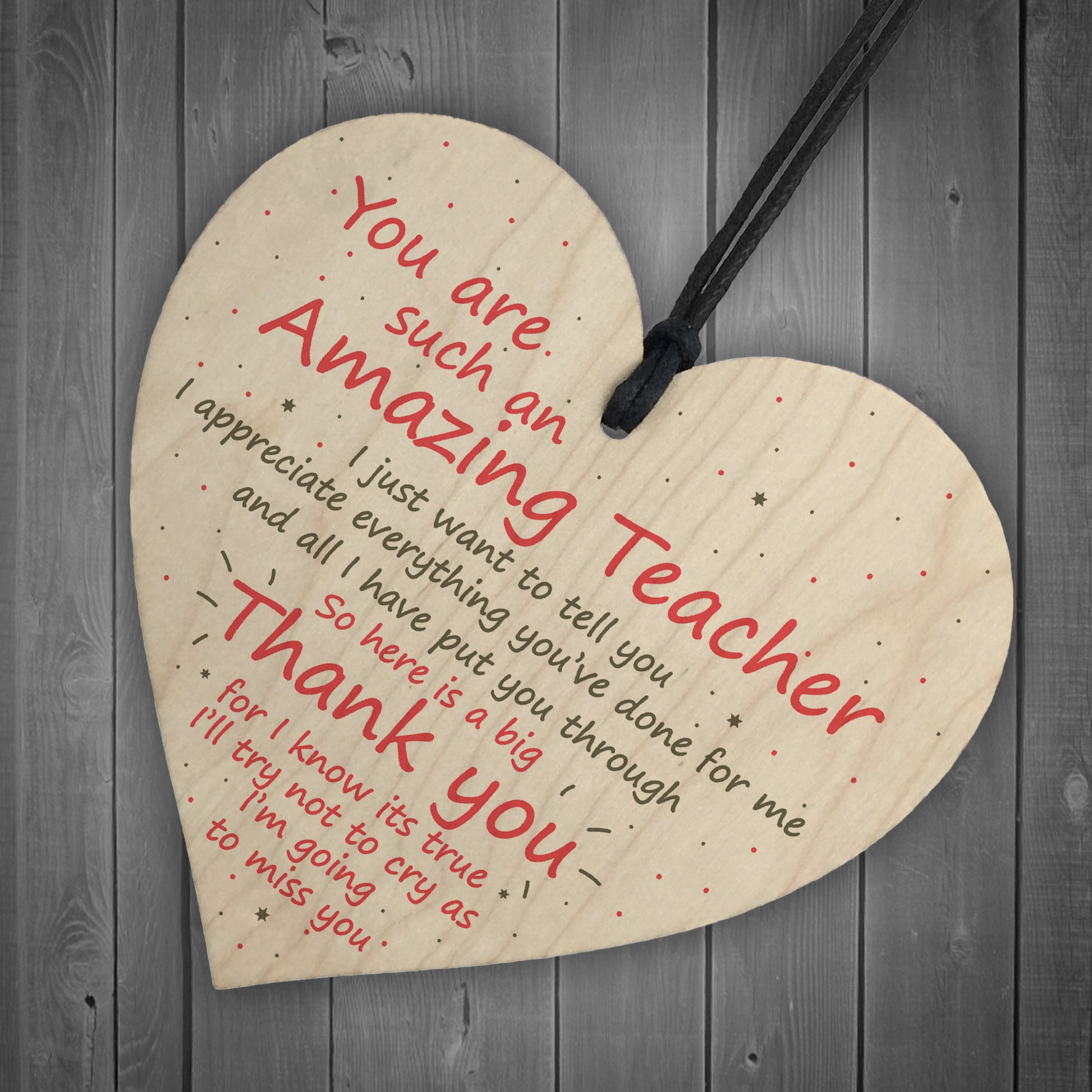This gorgeous wooden heart plaque printed with this beautiful message would be a lovely thank you gift that your teacher could keep forever. Give this gift with love and put a smile on their face every time they read it.