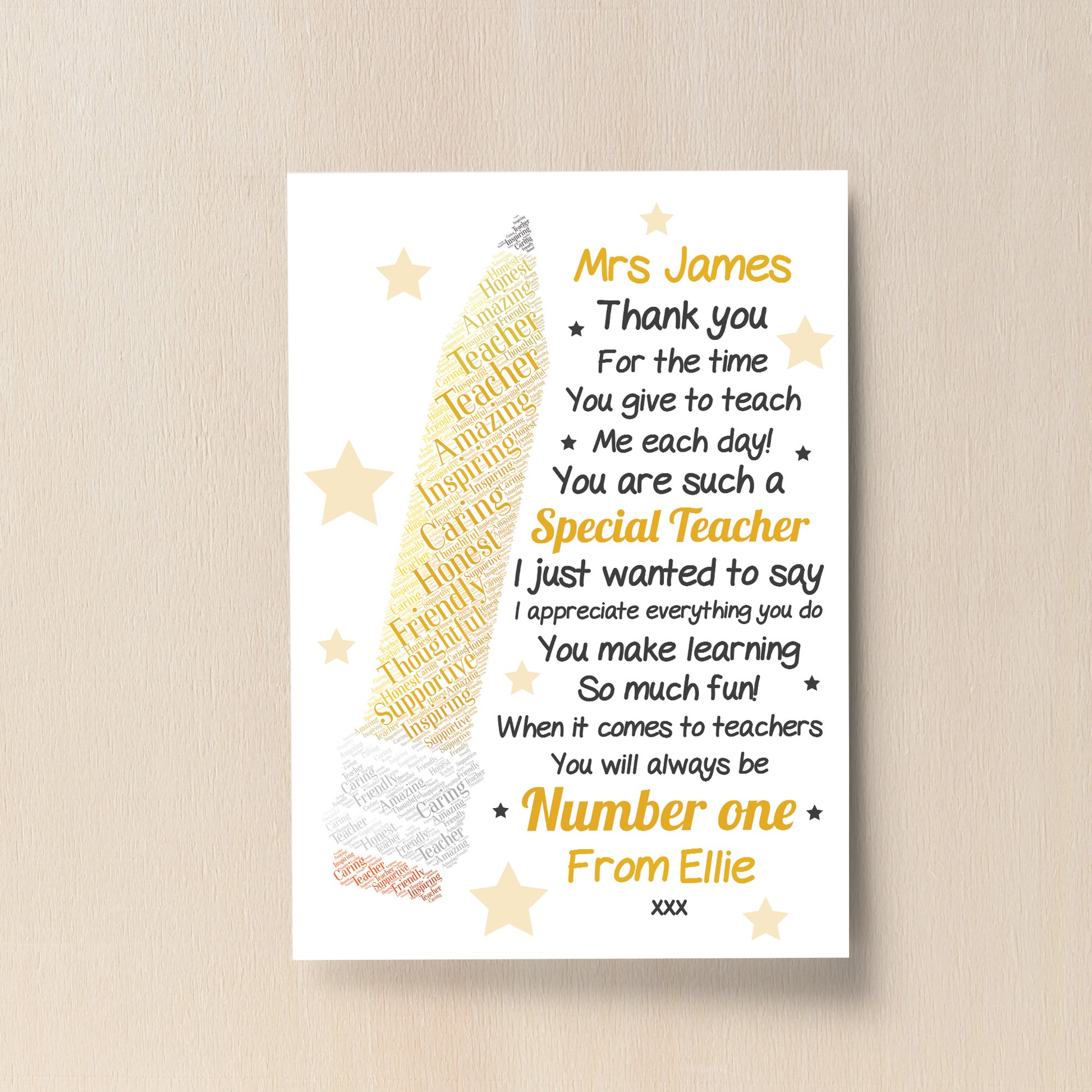 Thank You Teacher Gift Personalised Print Teaching Assistant