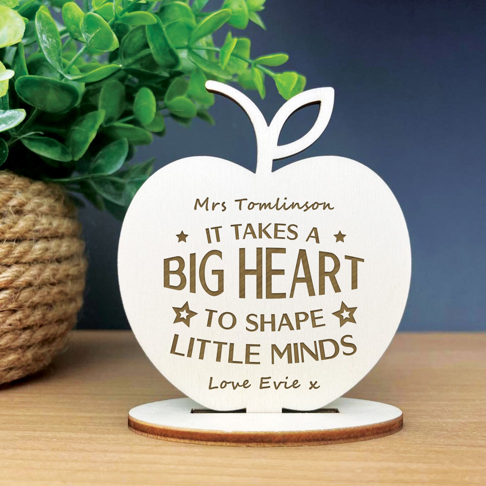 A gorgeous personalised wooden apple standing plaque engraved with a